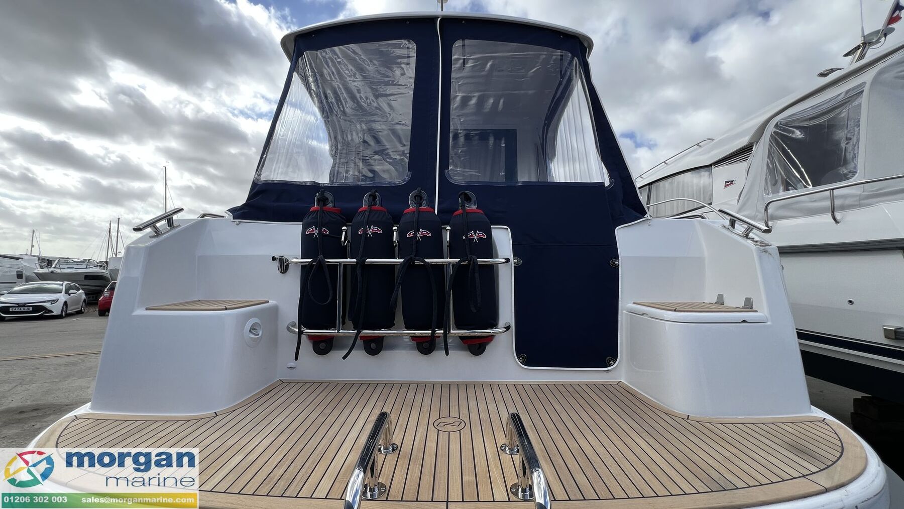 Machinery: Volvo Penta D4-270. Quick BTQ180-55 bow thruster. Humphree Comfort Package (auto trim, pitch control & auto list). Eberspächer D4 heater & defroster. Isotemp Spa 20L hot water system. Fuel capacity 250L. Water capacity: 150L. Hot water capacity: 20L. Waste capacity: 80L. Seafire automatic fire-fighting system. Manual and electric bilge pump. Fuel capacity: 250L. Fresh water capacity: 150L. CE Category B.