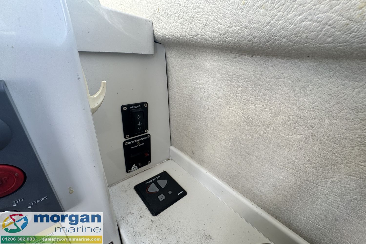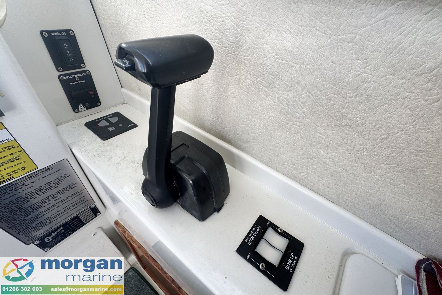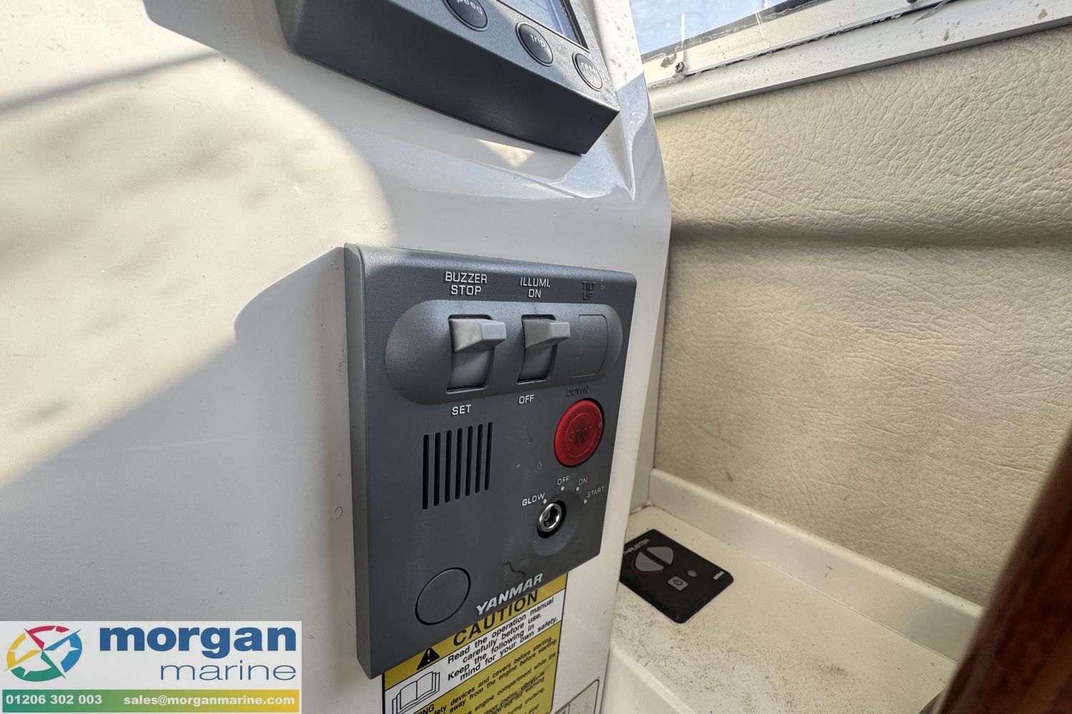 Electronics: Raymarine chart plotter. Raymarine Radar. Standard Horizon VHF radio. 12v USB socket. Raytheon Tridata display. Electric trim tabs. Bow thruster. Electric windscreen wipers. Compass. Nav lights. Interior lights. Anchor light. Cabin lights. Roof searchlight. Automatic and manual bilge pump. Engine gauges ( Oil pressure, temperature, Yanmar engine RPM, fuel and trim). Shore power connection with 2x connections on deck.