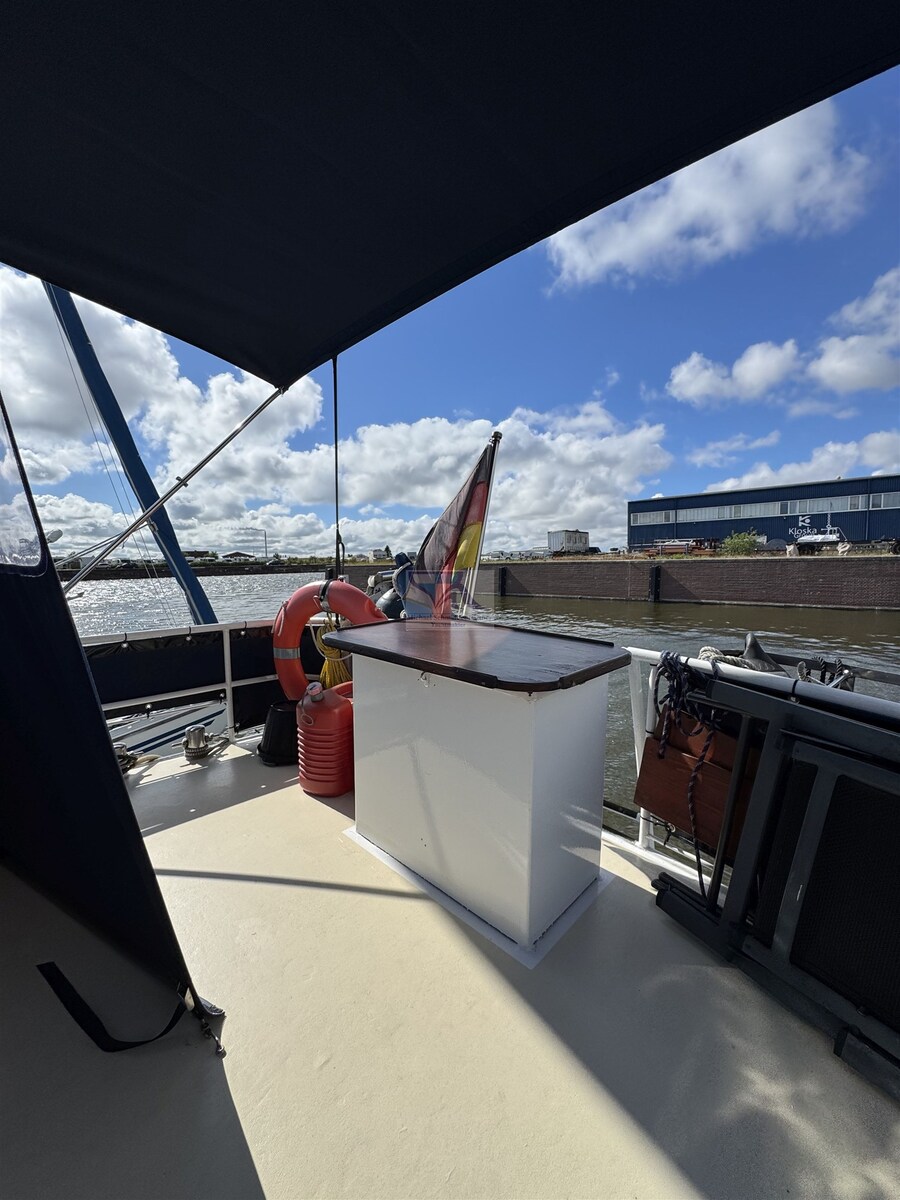 AIS (senden/empfangen), Roerhoek indicator, Kompas (Azimuth), Beeldscherm (Am Außensteuerstand), Dieptemeter (Clipper), Kaartplotter met GPS-antenne (über Laptop), Marifoon (Lowrance).