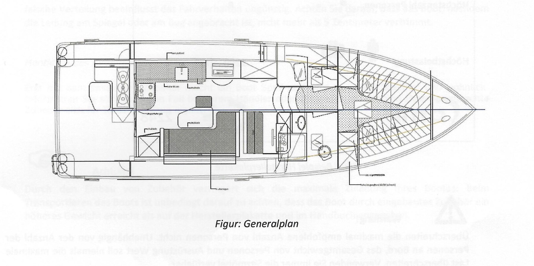 Винт кормы - sterntruster (hydraulisch über Motor), Винт носовой части - bowtruster (hydraulisch über Motor).
