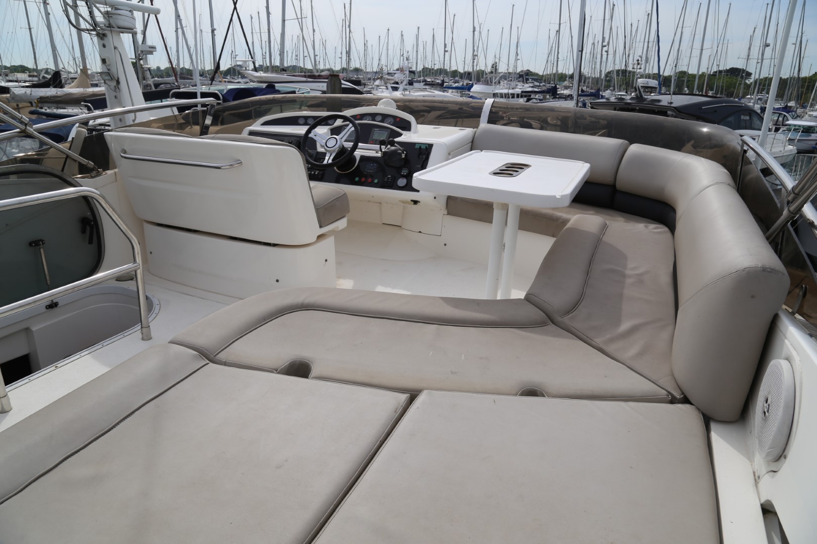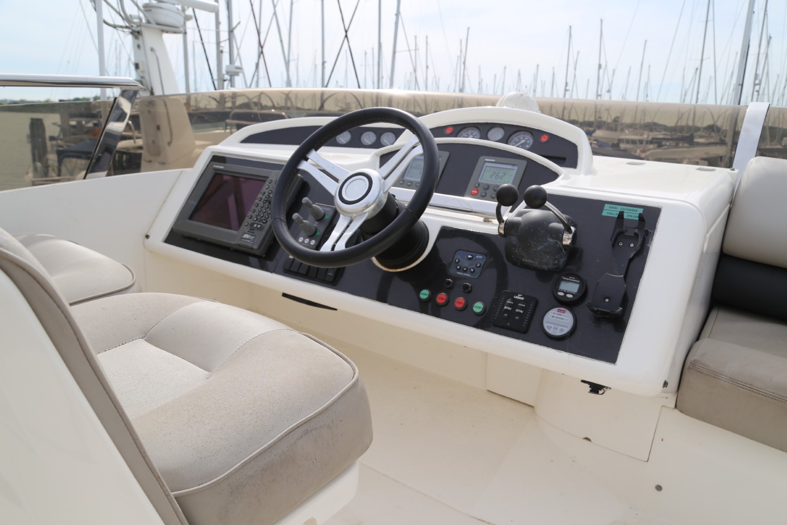 Twin helm seats with fore and aft adjustment for helmsman
