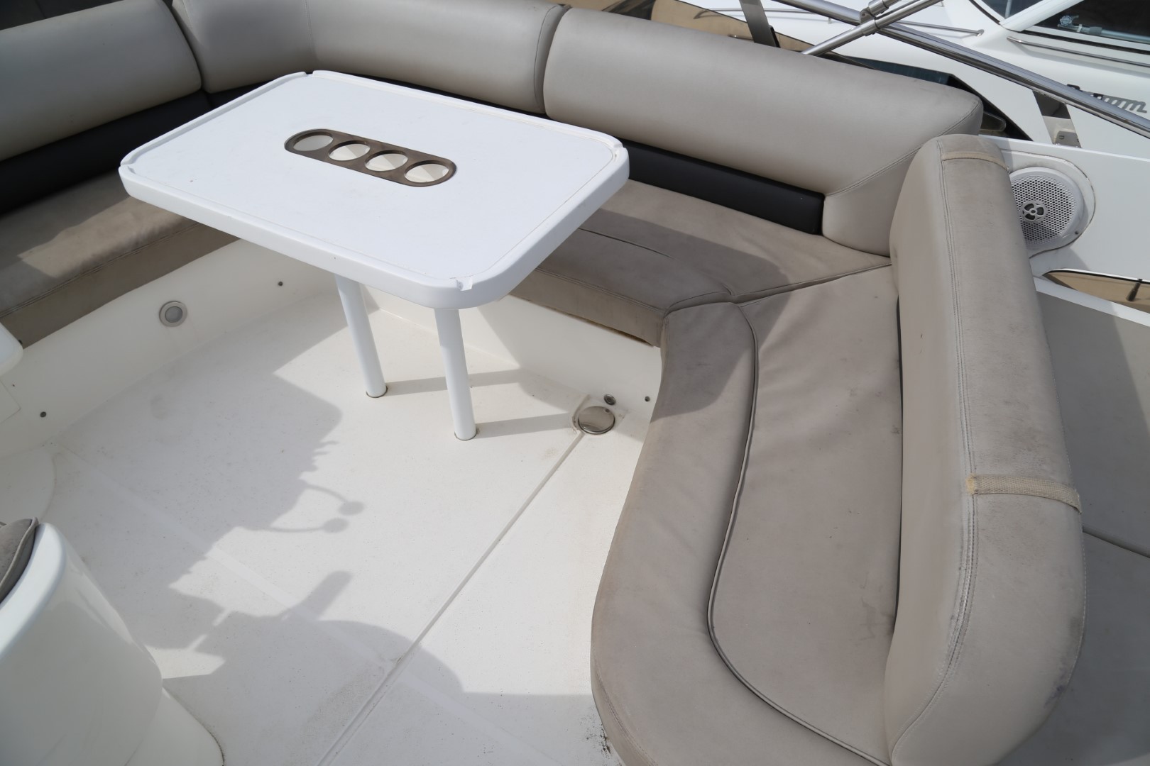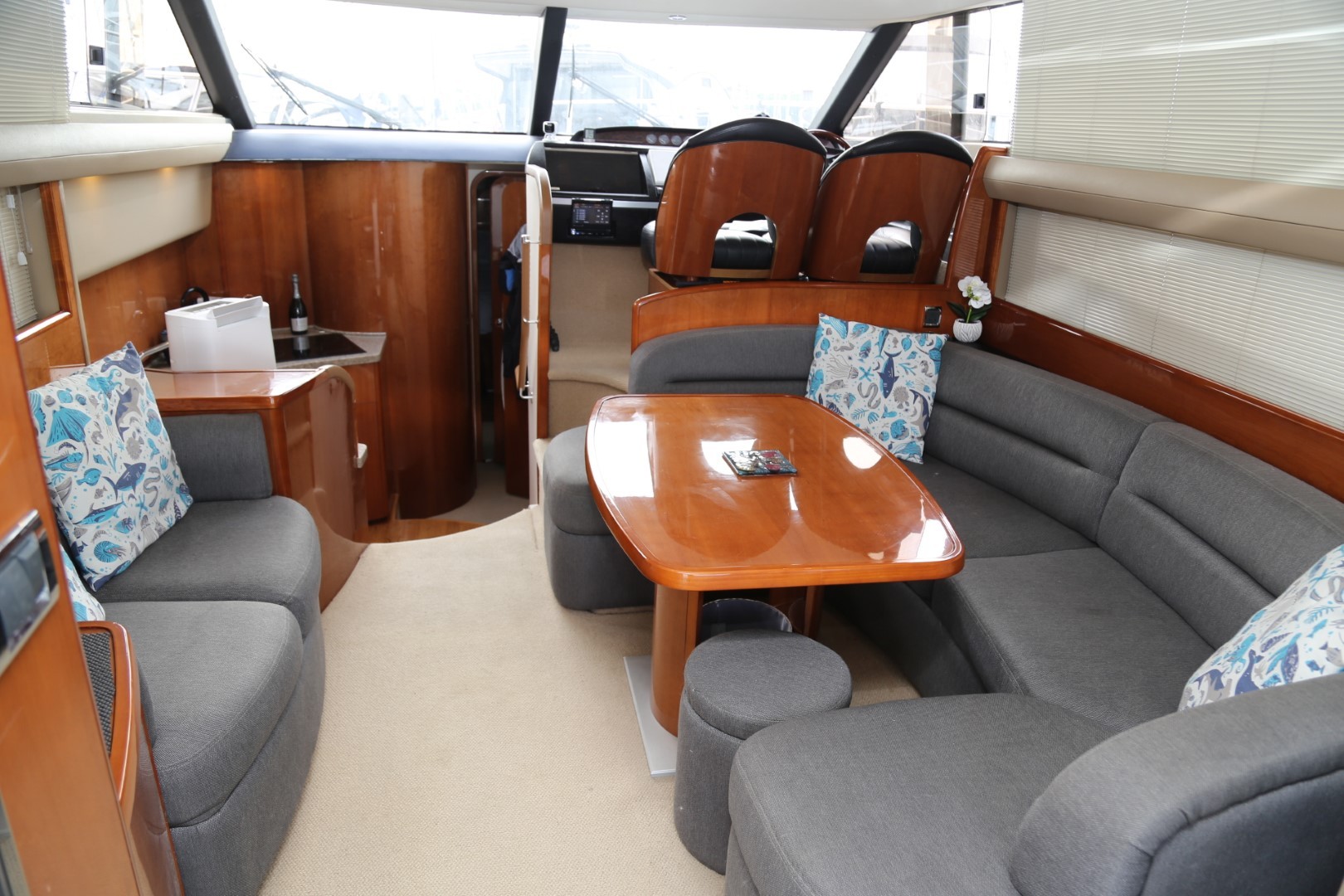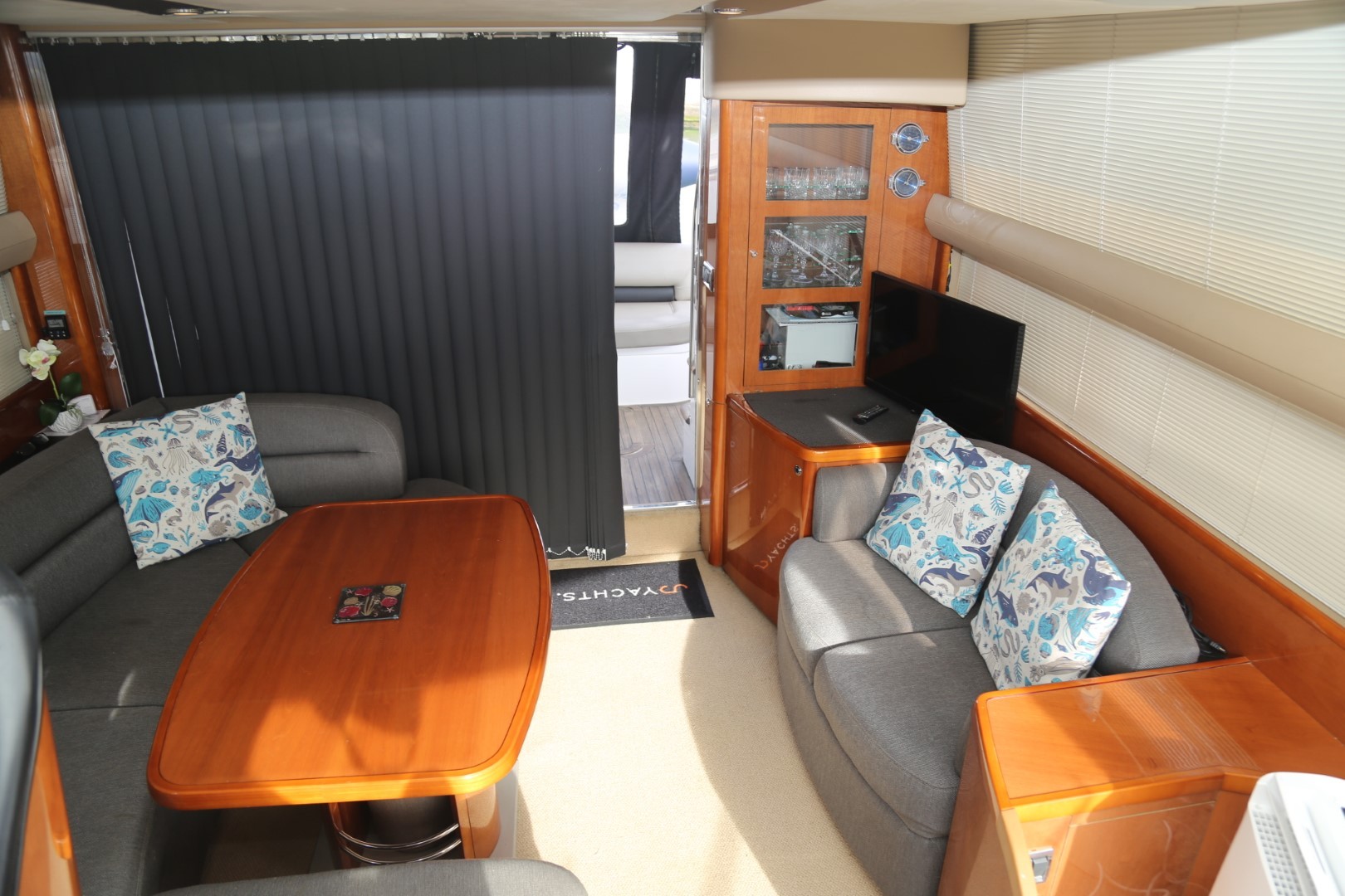U-shaped sofa with dining table to starboard (converts to double berth)