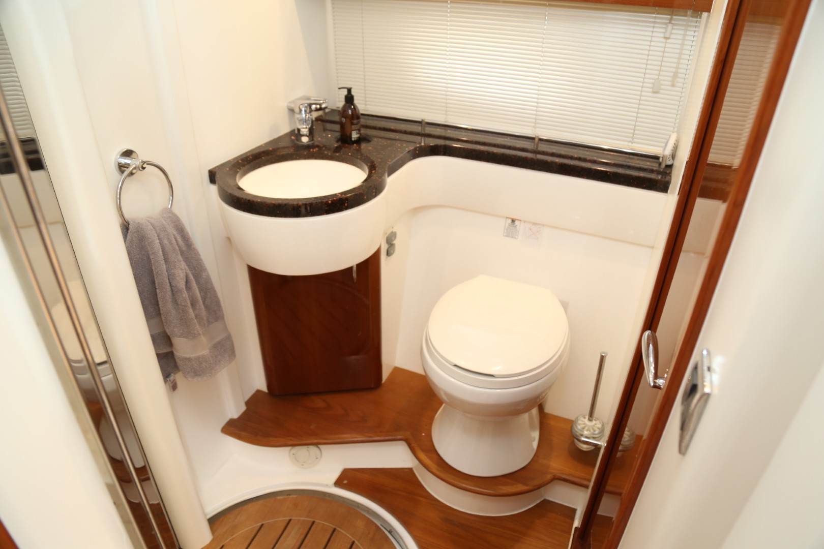 Transom door leading to integral bathing platform