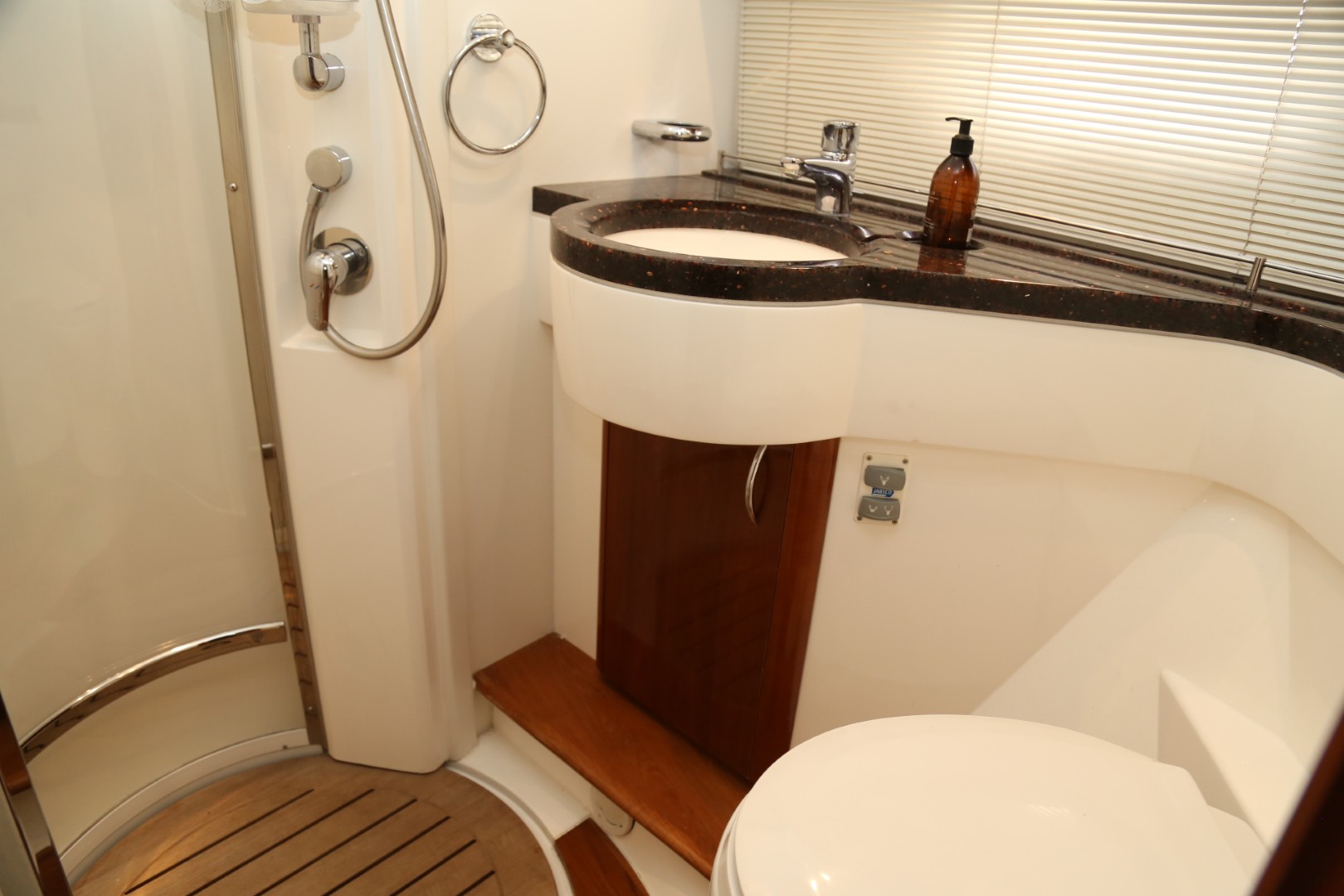 Separate shower area with automatic pump-out