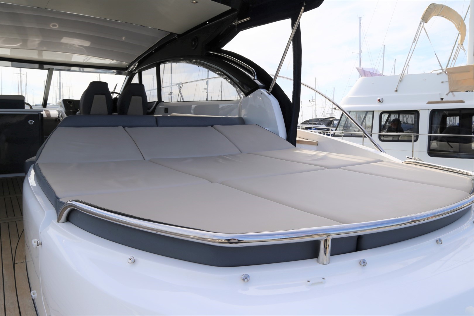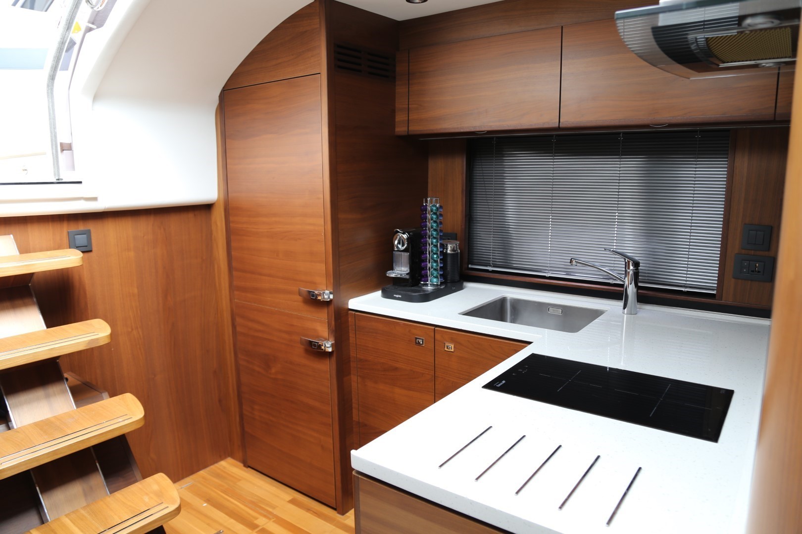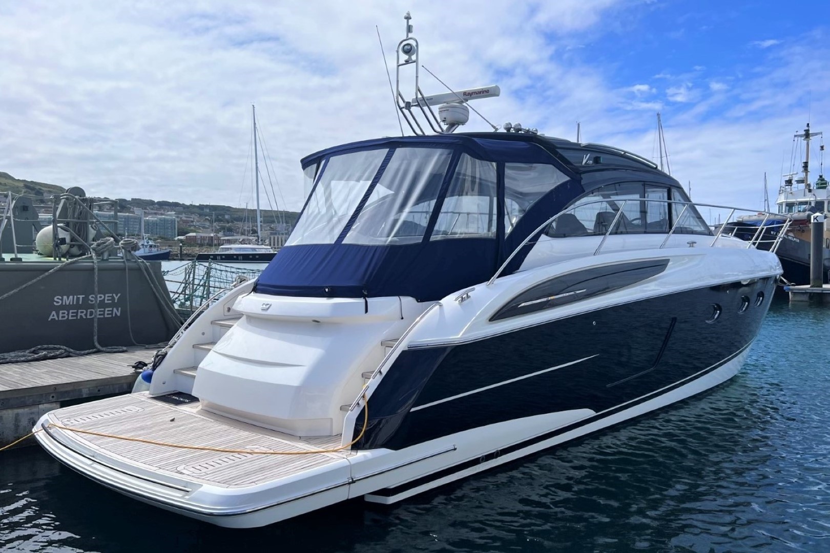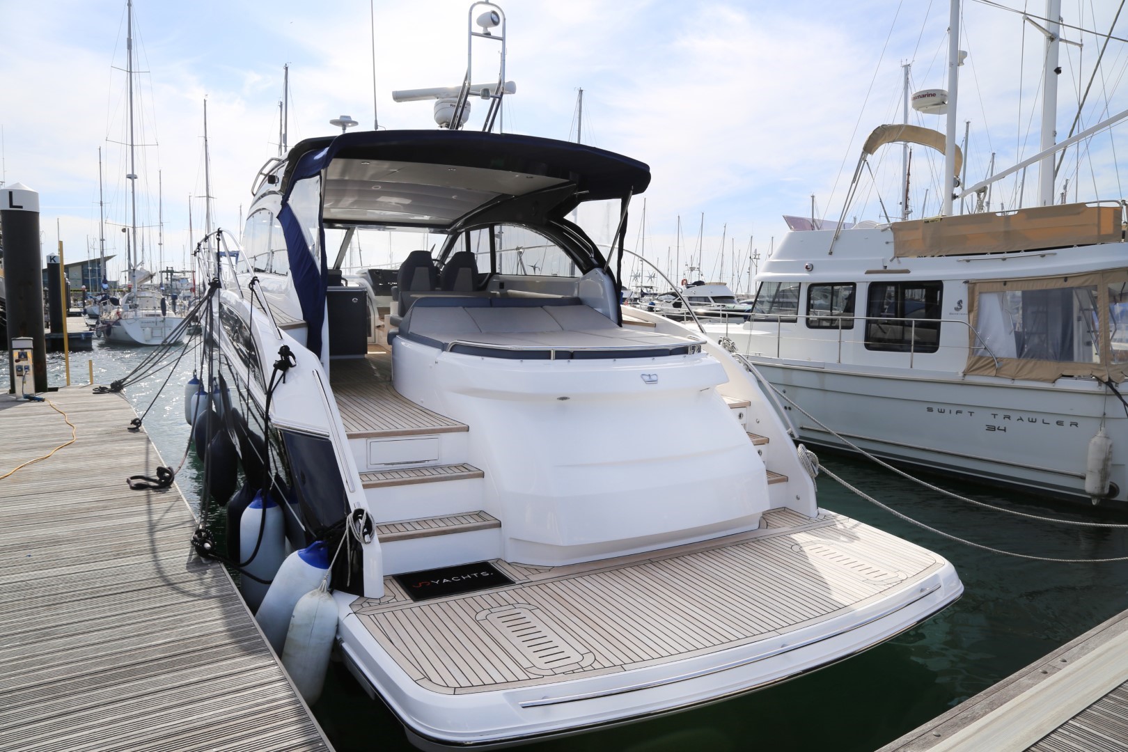 Teak-laid transom platform/cockpit deck/stairs to side decks