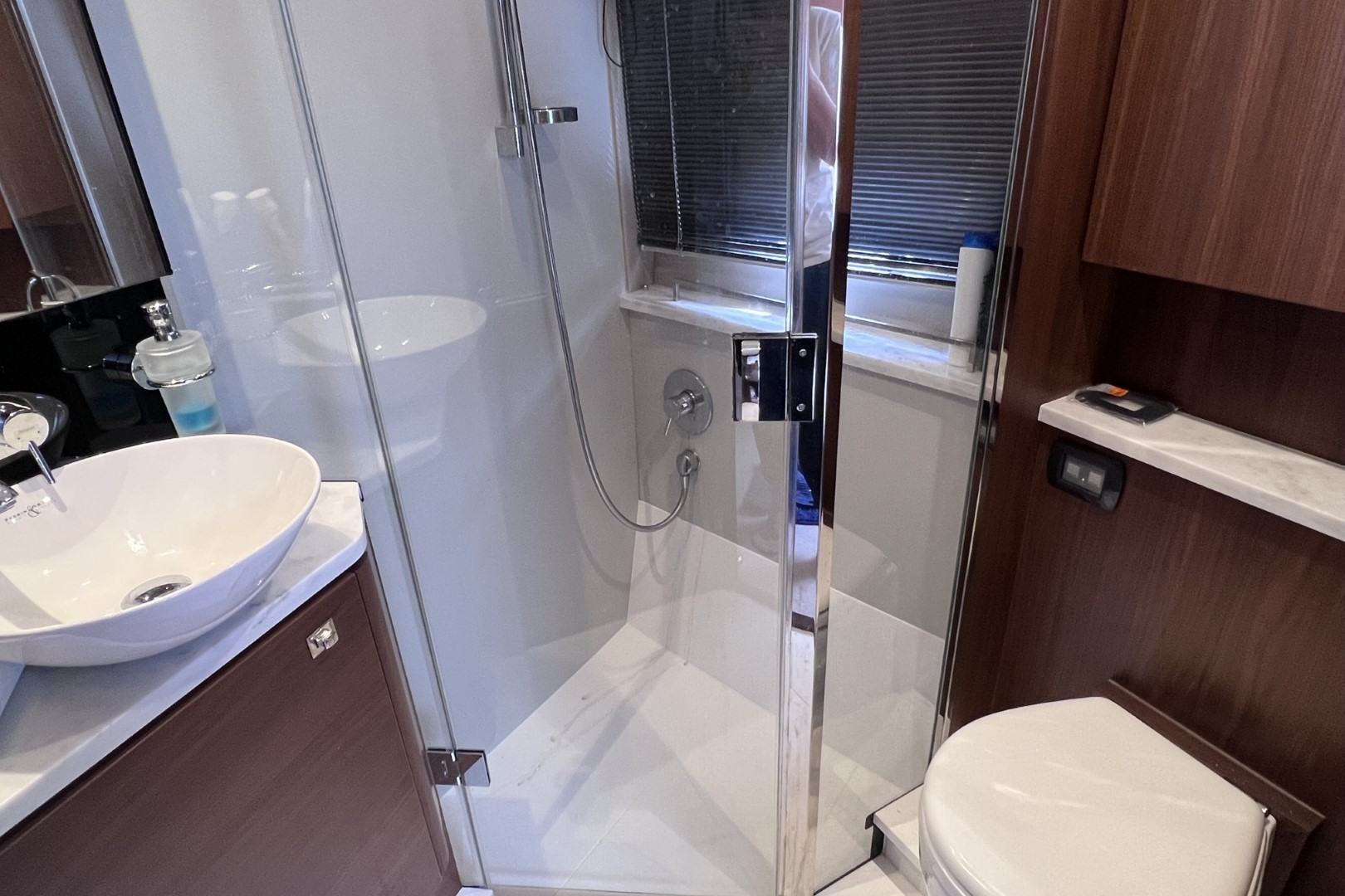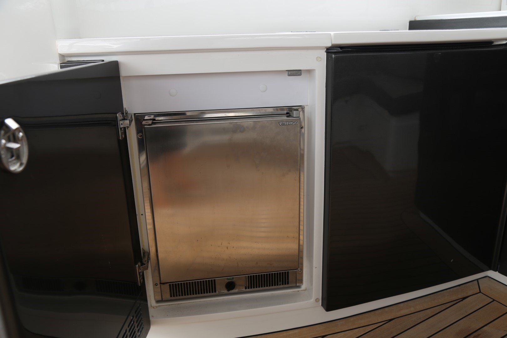 Triple stainless-steel framed sliding doors to cockpit