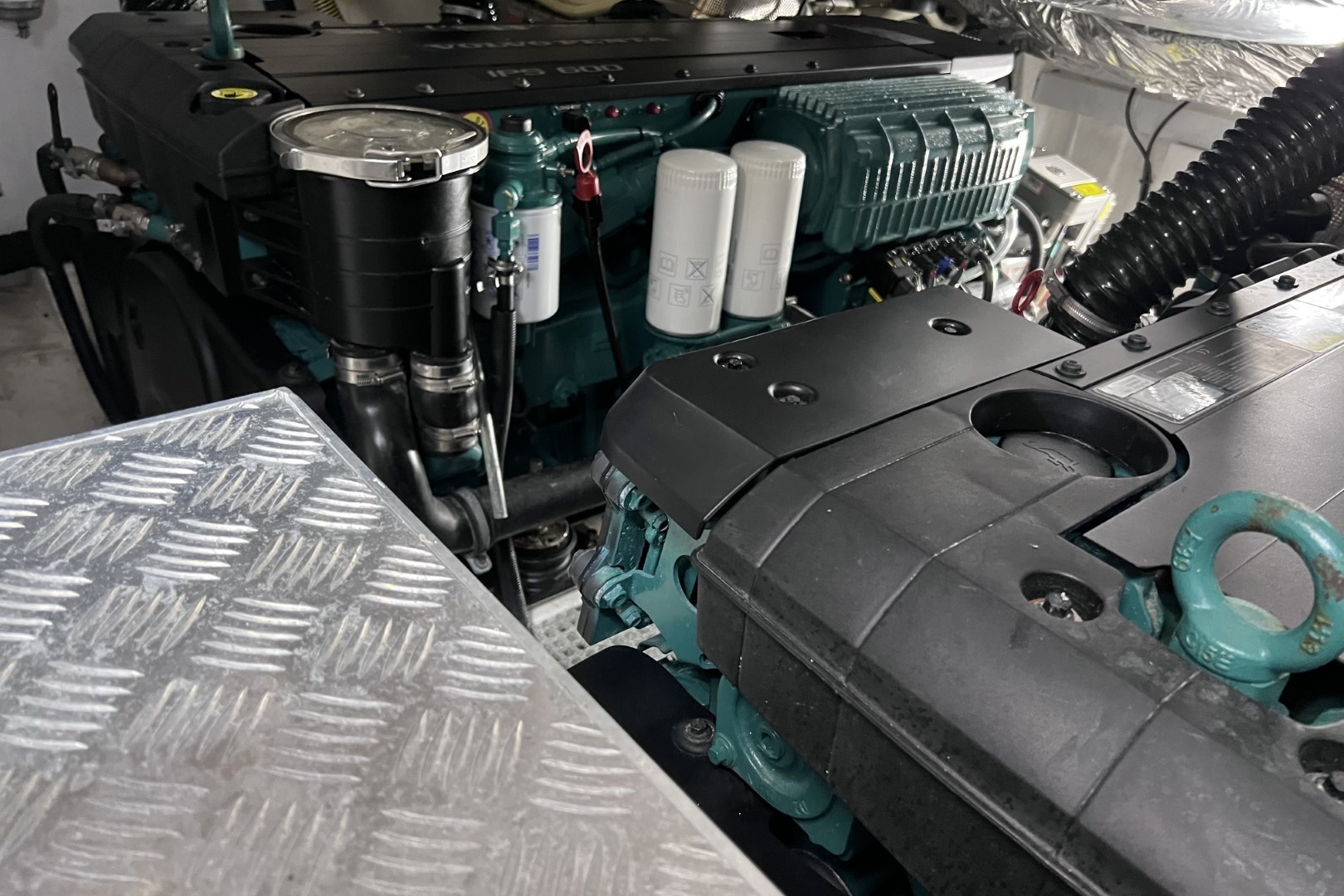 Twin fuel tanks (in NS8 marine grade alloy) with interconnection system giving 265 gallons/318 US gallons/1,200 litres capacity
