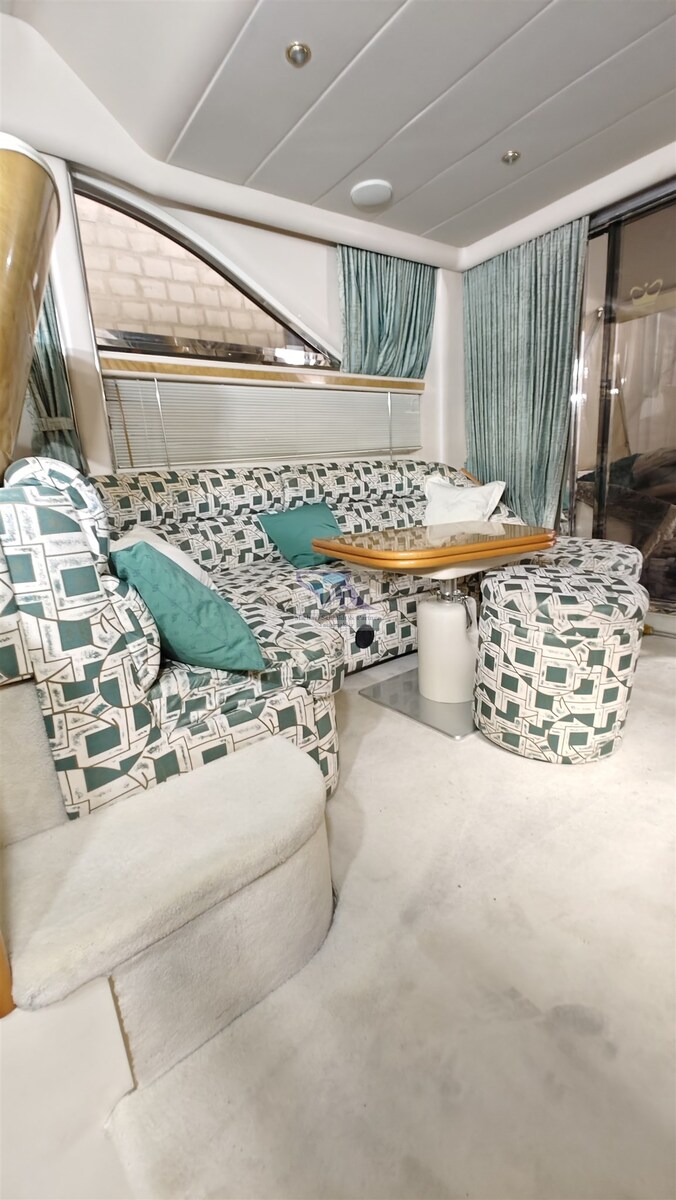 Innenausstattung: Die Innenräume sind luxuriös gestaltet und bieten Komfort und Eleganz. Es gibt eine gut ausgestattete Kombüse (Küche), einen Salon mit Sitzgelegenheiten und Panoramafenstern sowie mehrere Kabinen.