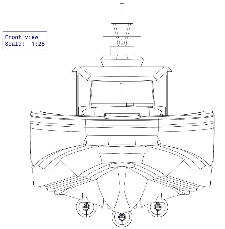 Esta embarcación de patrulla en compuesto de carbono con estructura en sándwich de infusión de carbono está diseñada para misiones de seguridad marítima, rescate, vigilancia y control. Con una longitud de 11,98 m y un ancho de 4,25 m, puede transportar hasta 12 miembros de tripulación y una carga útil de 5 toneladas (hasta 50 pasajeros), con un peso total cargado de 13 toneladas. La embarcación tiene una capacidad de combustible de 3.000 litros, lo que le permite una autonomía de 900 millas náuticas a una velocidad de crucero de 20 nudos y puede alcanzar una velocidad máxima de 54 nudos.