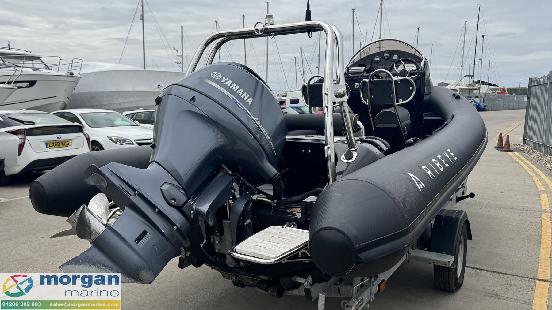 2023 Ribeye A600 – Yamaha F130 AETL with only 66 Hours! This nearly new Ribeye A600 is the ultimate all-rounder – perfect for thrilling days of water skiing or relaxed family outings. Powered by a Yamaha F130 AETL outboard engine with just 66 hours, this boat combines performance with reliability. It comes fully equipped with a SBS roller trailer, Garmin chart plotter, Garmin 215i VHF radio, and a Fusion audio system with high-quality speakers. The deck is beautifully illuminated with low-level blue LED lighting, enhancing its stylish, ready-to-go look. Designed for water sports, it includes an A-frame with tow eye, jockey seats, a boarding platform with ladder, Hypalon tubes, and Flexi-teak flooring. The Ribeye A600 stands out for its exceptional safety, strength, stability, speed, and comfort. Don’t miss out – contact Morgan Marine now for an early viewing. This boat won’t be here long!