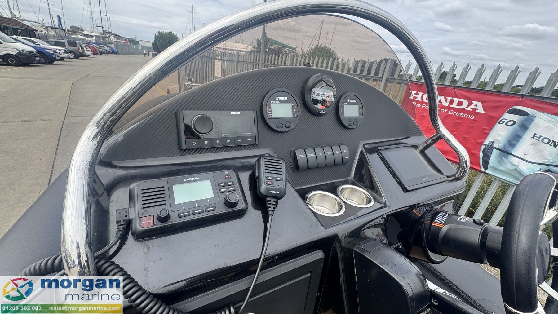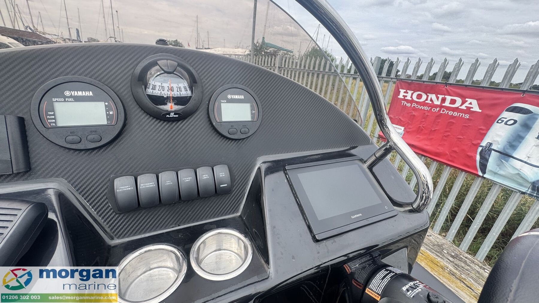 Electronics: Garmin 7 inch chart plotter. Garmin VHF 115i VHF radio. Fusion audio system with Bluetooth and speakers. Yamaha digital gauges x2. LED deck light blue set. Dual battery 3 way system. Compass. Navigation lights. Automatic and manual bilge pump.