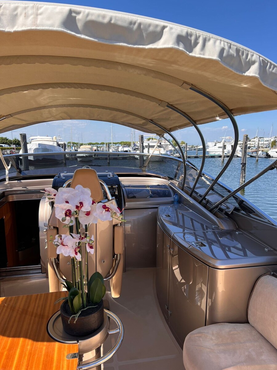 2 Motor Alarm, Bilge Alarm, Waterdruk systeem, Speciale kleur, Buitendouche, Hydraulische trimflappen, Brandblussysteem, Trimflappen indicatoren, Wasbak in de kuip, Sfeerverlichting, Loopplank (Idraulica a scomparsa), Platform, 3 Automatische bilgepomp, Ingangsdeur, Walaansluiting 230V, Gelijkrichter, Elektrische ankerlier, Zwemtrap, Kuiptafel.