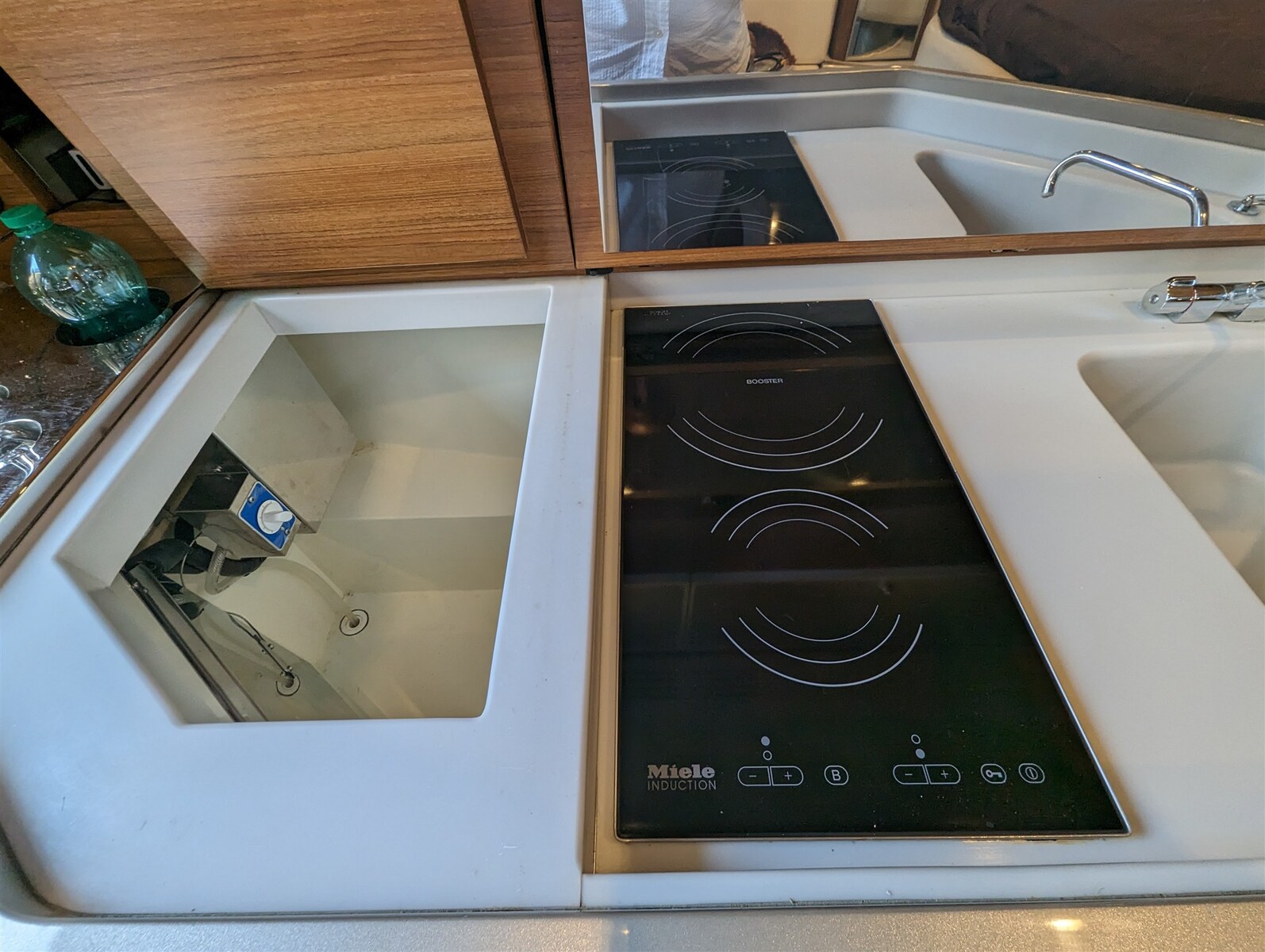 Galley, Deck Refrigerator, Ceramic hot plate.