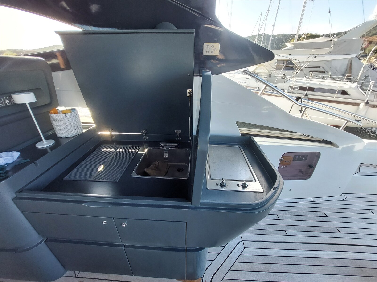 Gas Alarm, 2 Motoralarm, Bilgealarm, Wechselstromgenerator, Druckwasserpumpe, Batterien (New 2025), Teak auf Laufdecks, Batterieladegerät (Victrom), Landstromkabel, Reling, Cockpitdusche, Suchscheinwerfer, 2 Trimmklappen hydraulisch, Hardtop, 2 Trimmklappen Anzeigen, Ketten-Waschanlage, Waschbecken im Cockpit, Nachtbeleuchtung, Unterwasserbeleuchtung, Außenbordmotor für Beiboot, 6 Fender, Gangway (Opacmare eletroidraulica a scomparsa), Plattform, Abwassertank-Abflusspumpe, 4 automatische Bilgepumpe, Teakdeck, Eingangstür, Teak im Cockpit, Landanschluß, Wasseranschluss, elektrische Ankerwinde, Badeleiter, Cockpittisch, Beiboot (2.20), Signalhorn, T-Top, Verholwinde auf dem Achterdeck, Verholwinde auf dem Vordeck.