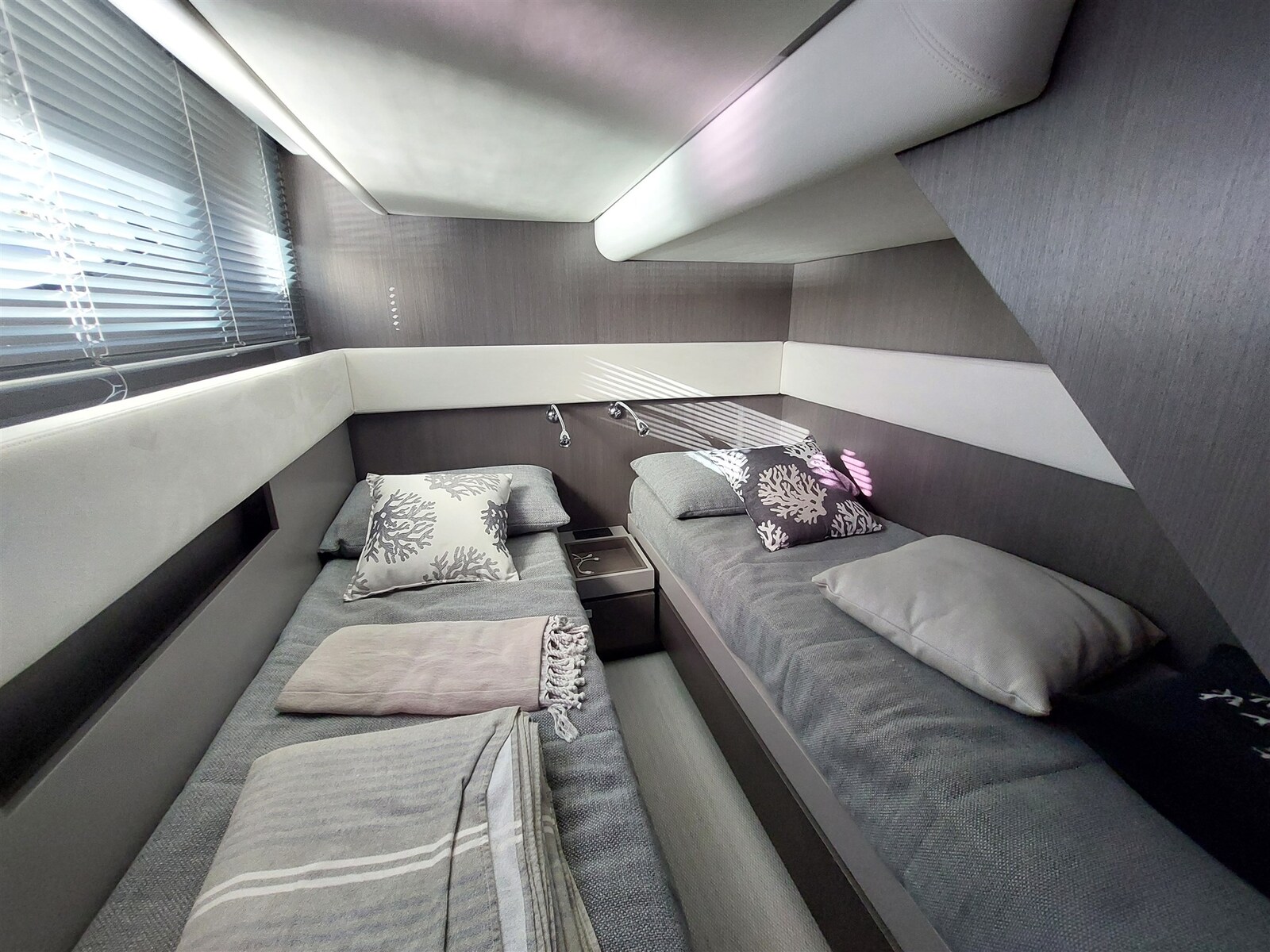 Le nouvel INfive n’a pas son pareil. Le plus rapide de sa catégorie avec un maximum de 45 nœuds. 3 cabines + marin ou garage à 16 mètres. Pour ceux qui veulent sortir des sentiers battus. IN five est équipé du MAN i6 de 800 ch et la propulsion est garantie par des transmissions de surface Top-System qui, soutenues par le système « Easy-trim », garantiront au yacht non seulement d’excellents niveaux de performance mais aussi un planage à basse vitesse. La manœuvrabilité sera confiée au joystick situé sur le poste de barre. Fiftyfive ajoute un propulseur d’étrave et un propulseur de poupe pour une maniabilité maximale même lorsqu’il est amarré dans des conditions critiques. Comme neuf, et prêt à tous les essais, ce yacht de sport de dernière génération n’attend plus qu’un nouveau propriétaire pour vivre d’autres saisons passionnantes. Possibilité de reprendre le bail en cours.