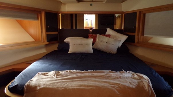 In the lower area there is a central master cabin with bathroom. In the bow there is a guest cabin and a side cabin.