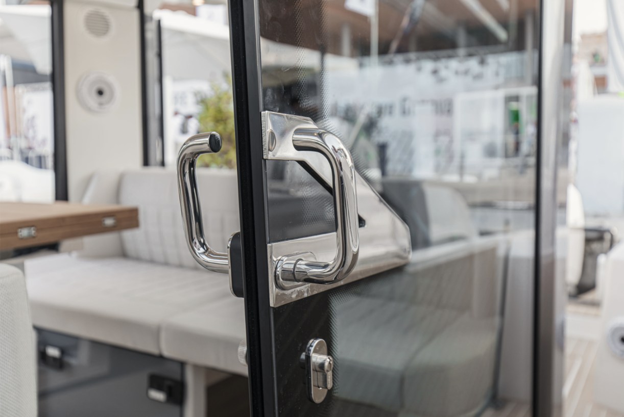 2 Motoralarm, Bilgealarm, Wechselstromgenerator, elektrische Trimmklappen, Hardtop, Waschbecken im Cockpit, Nachtbeleuchtung, Plattform, 3 automatische Bilgepumpe, Eingangstür, Seitentür, Badeleiter, Cockpittisch, Signalhorn.