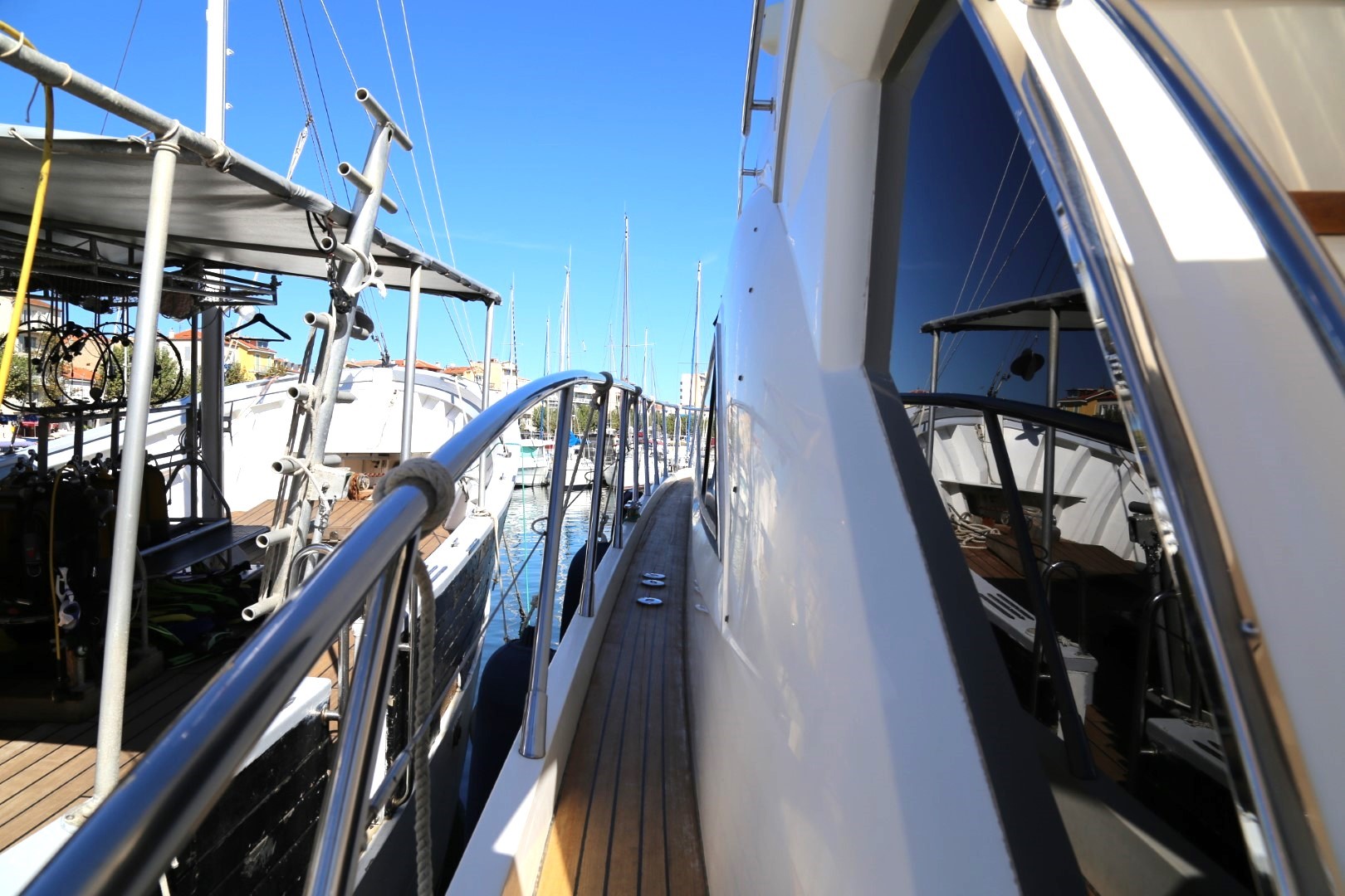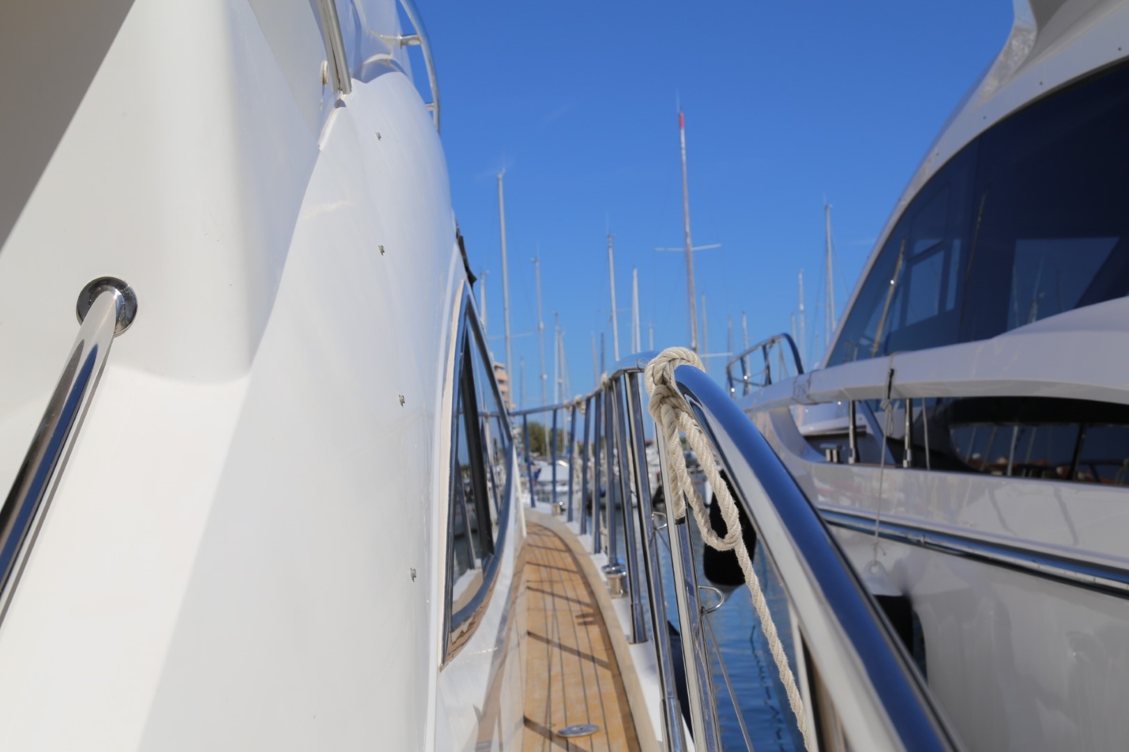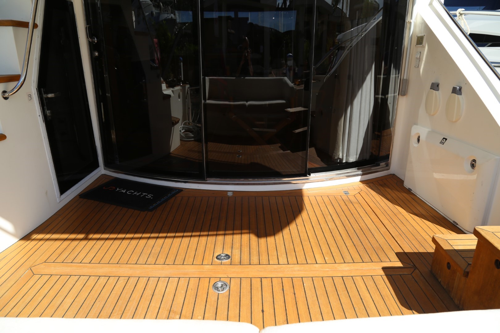 Access to side decks via teak laid steps