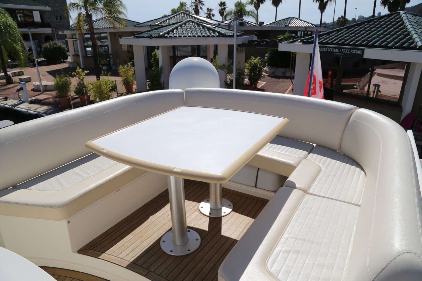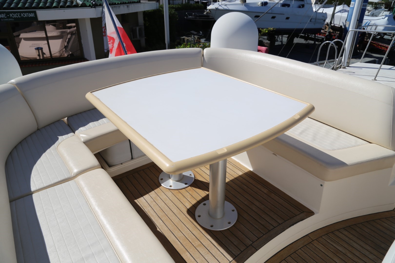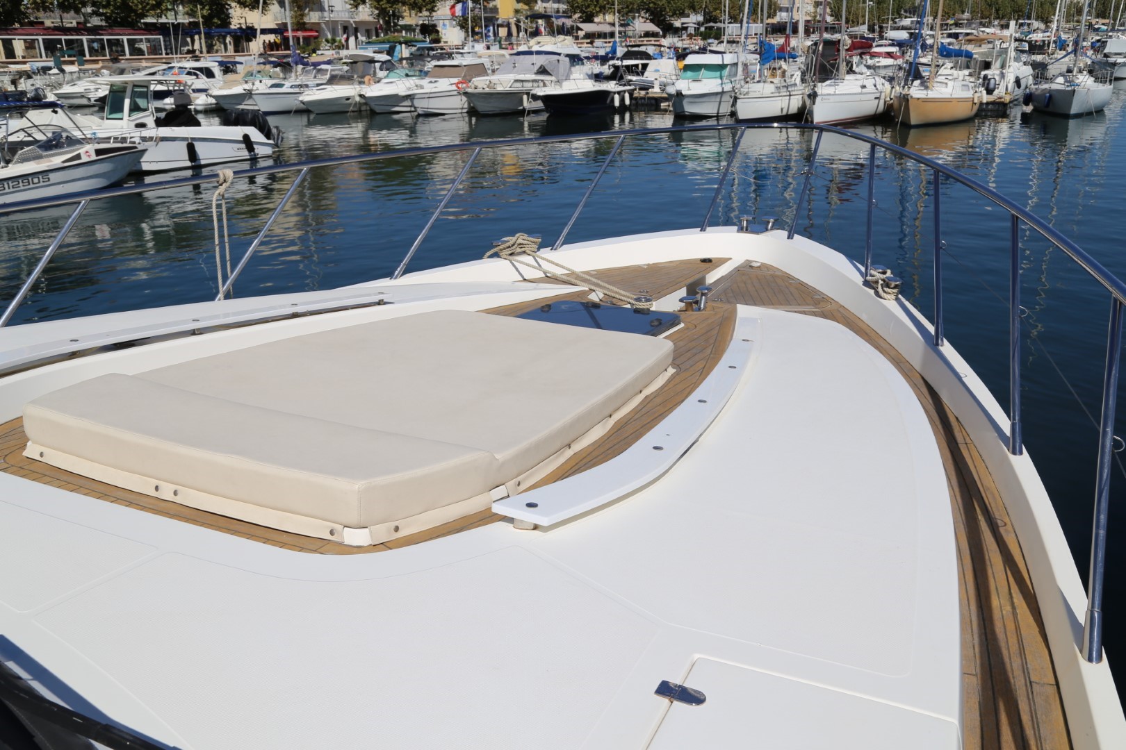 Sunbed area, recessed, with teak deck surround, handrails and drinks holders