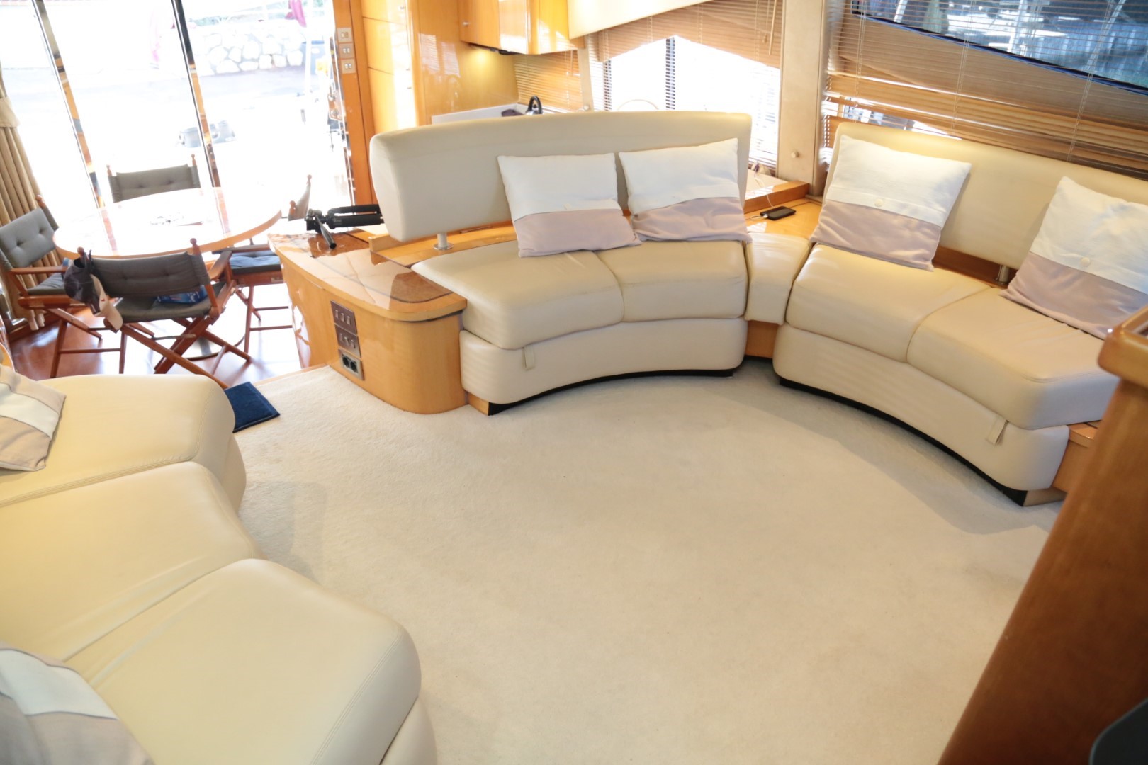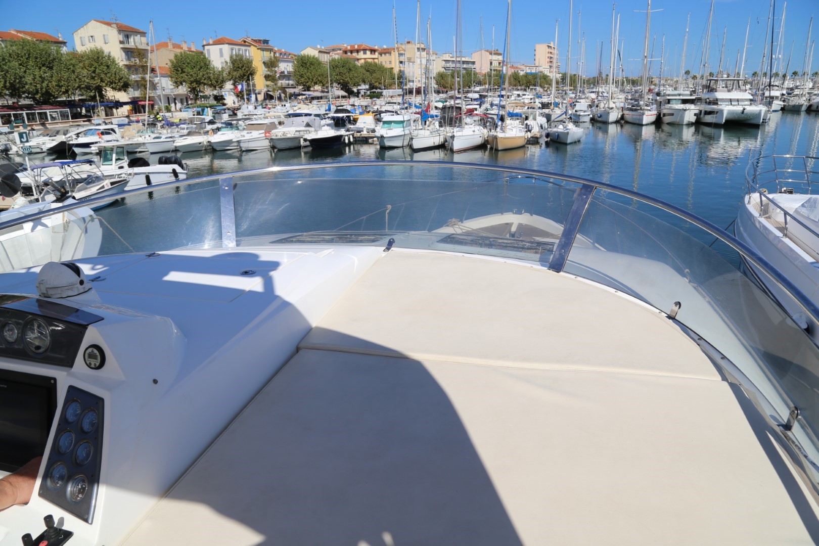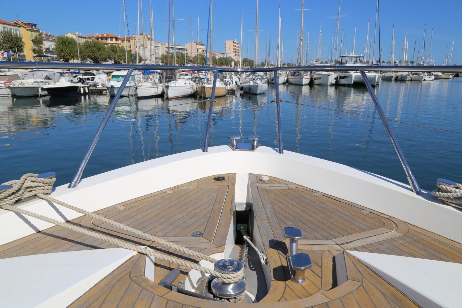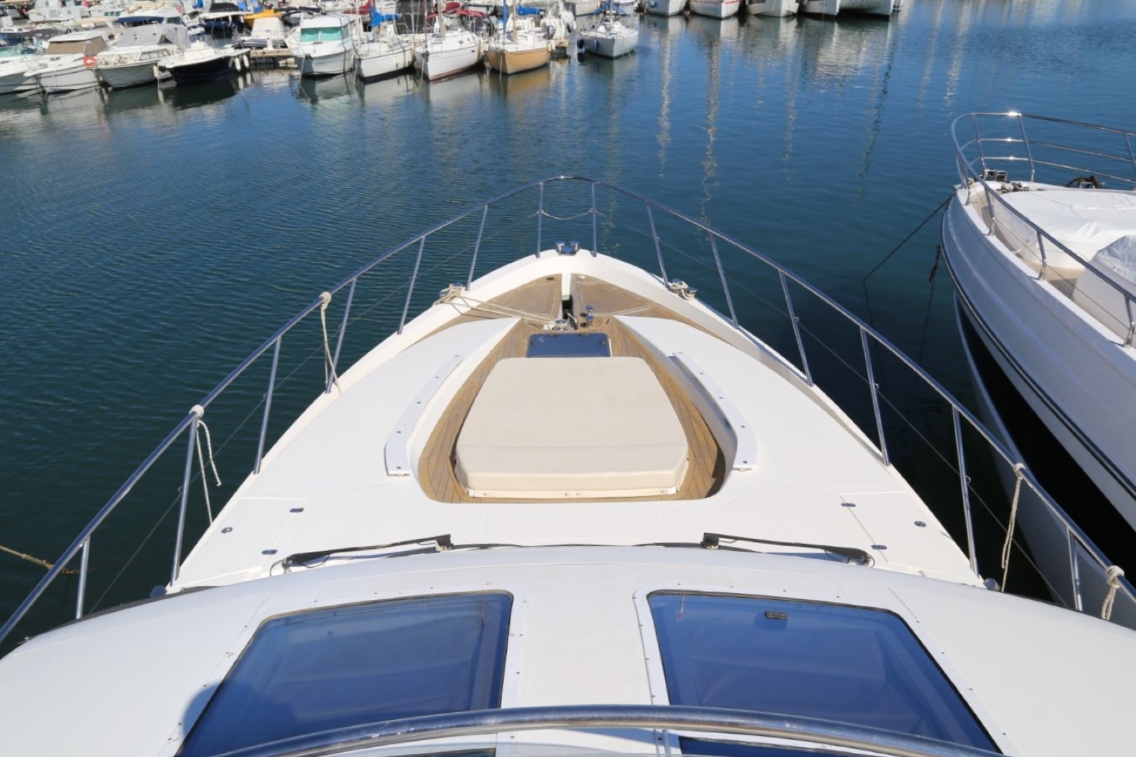 Sunbed area, recessed, with teak deck surround, handrails and drinks holders