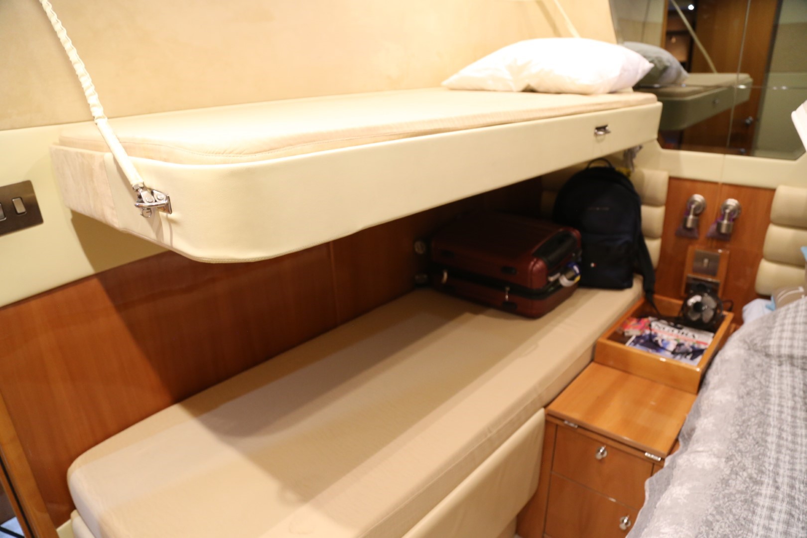 Berth double, with sprung mattress and storage below