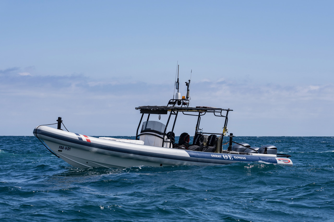 Barco de trabajo diseñado y equipado según las especificaciones del Team Orient Express de la 37ª America's Cup.