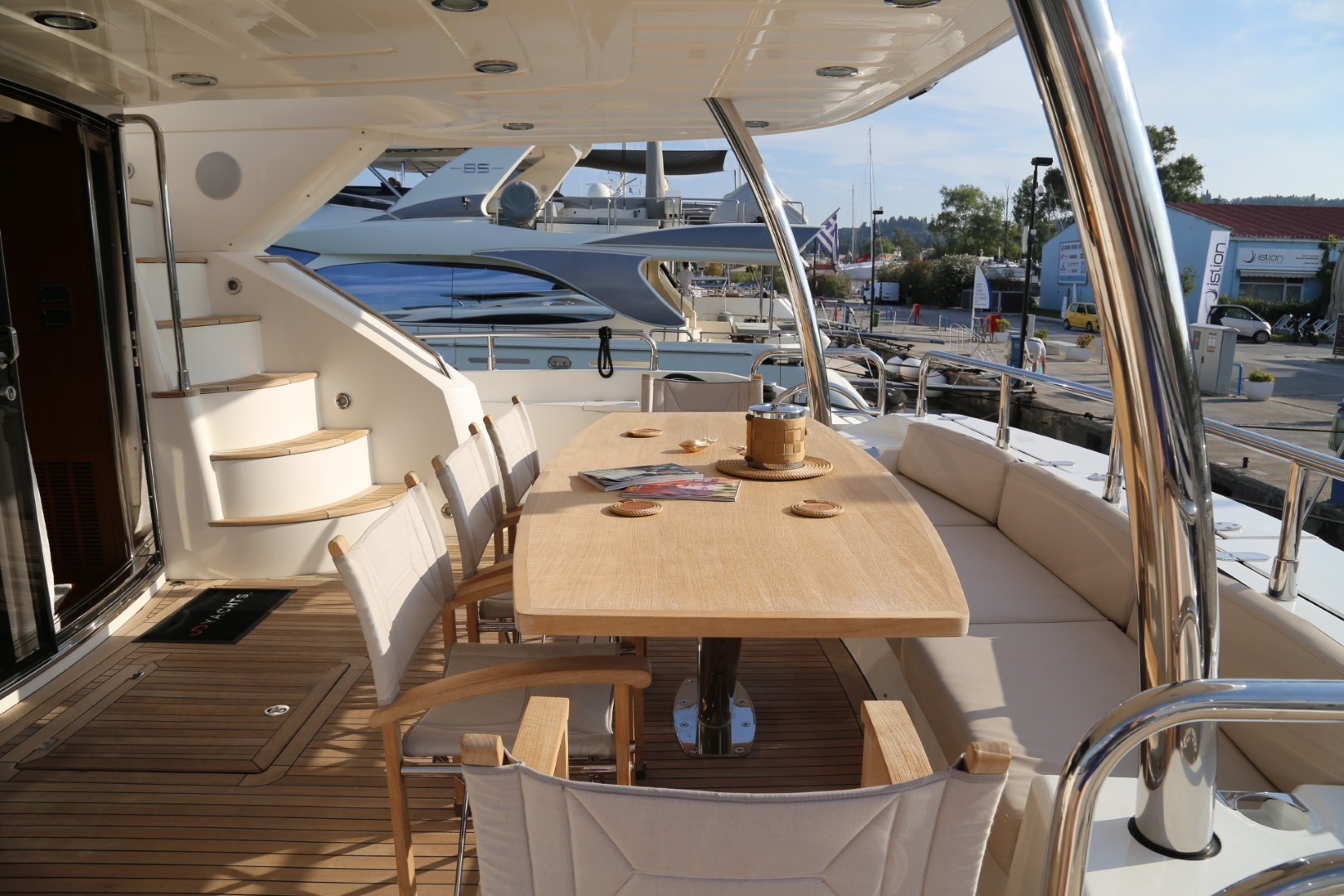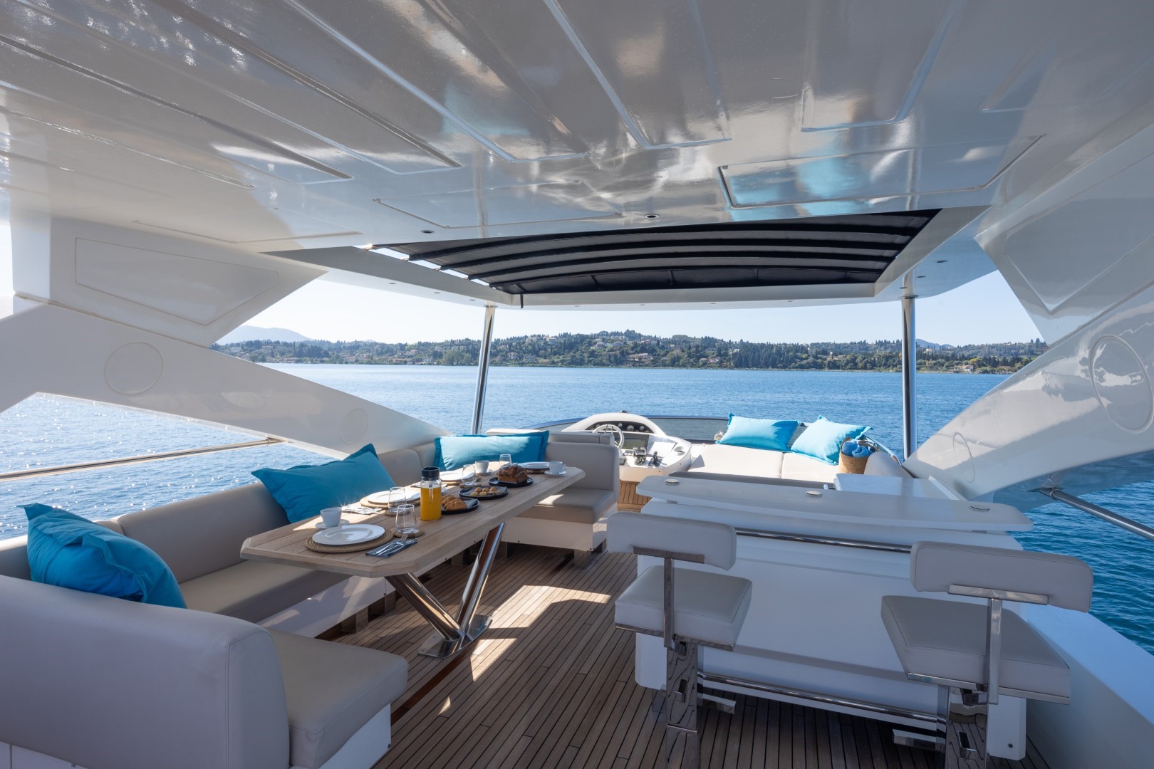Flybridge wetbar with sink, ice maker, fridge and griddle