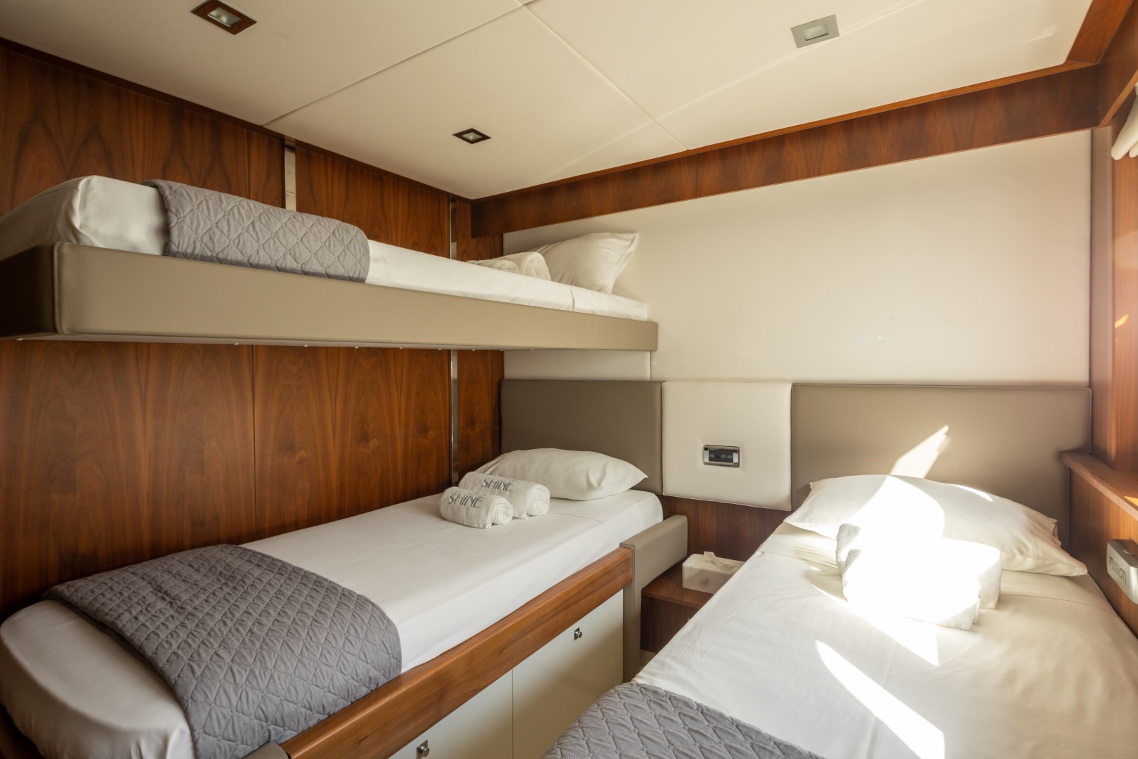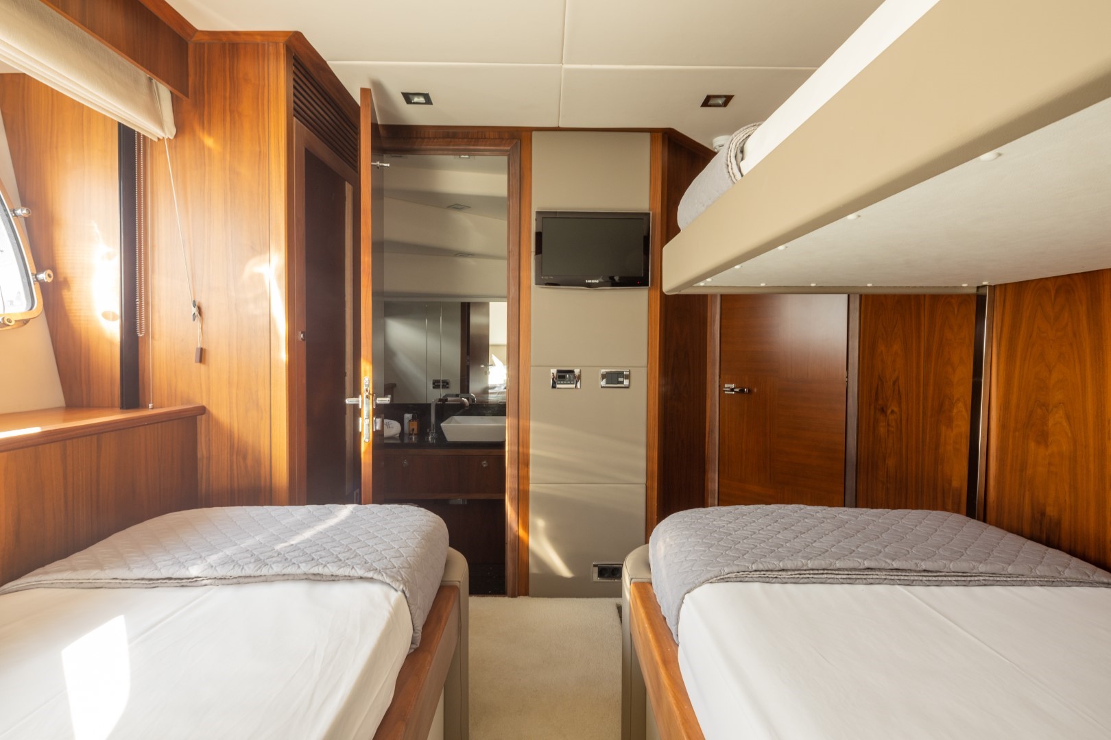 Flatscreen televisions and DVD/CD player in all guest cabins and crew mess