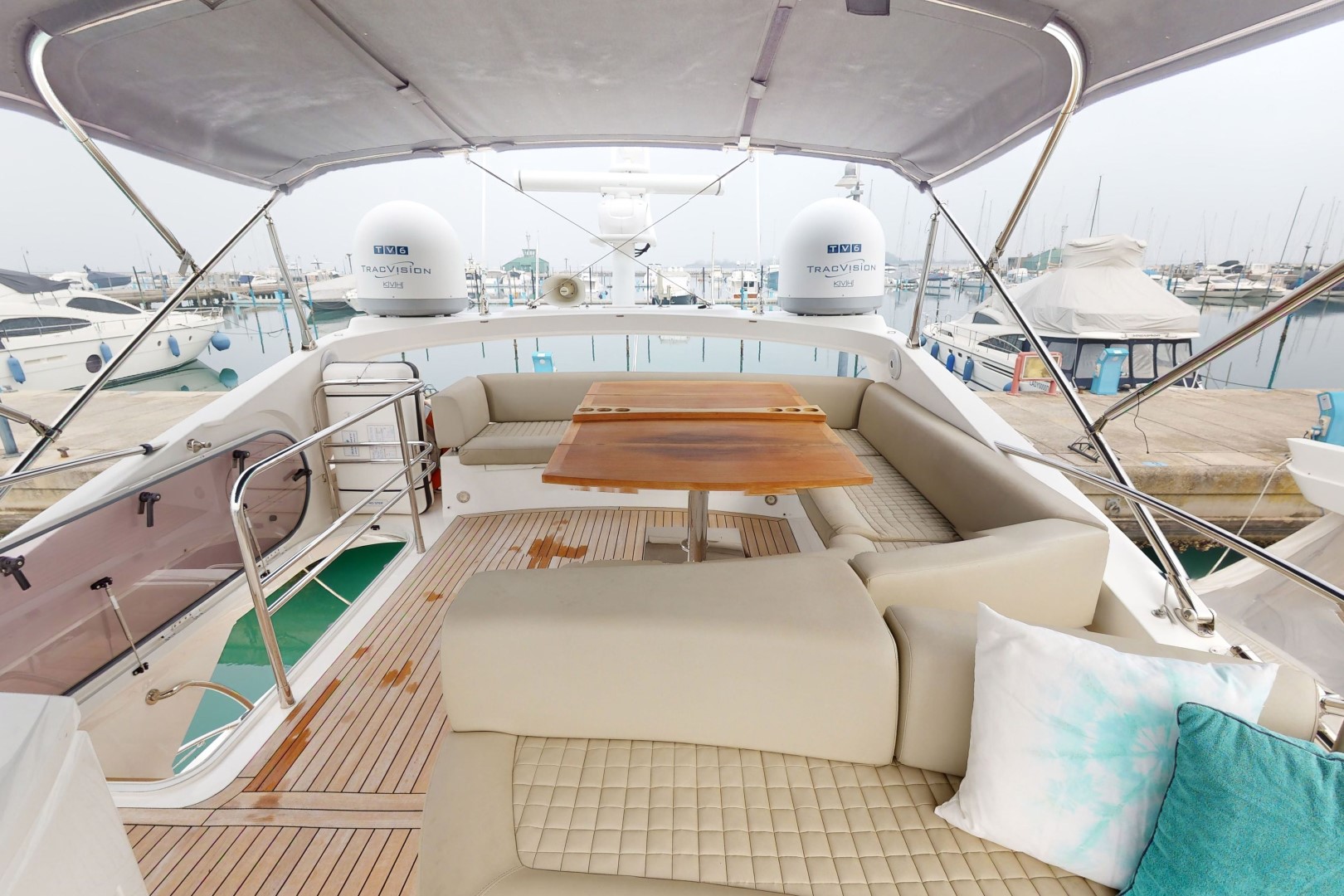 Flybridge seats and wetbar covers - Flybridge teak table