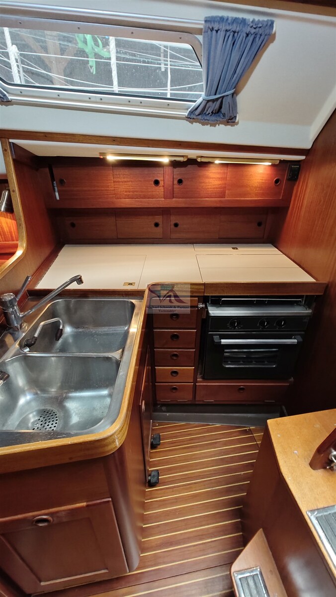 3 Anchor (mit 30m Kette), Water pressure pump, 4 Batteries (4 x 100 AH), Teak Side Decks, Automatic Bilge Pump, Manual Bilge Pump, Teak Cockpit, Shorepower connector, Electric Windlass, swimming ladder, cockpit table, 5 Winch (3 Lewmar ST, 2 Asahi 3-Gang ST), Windex.