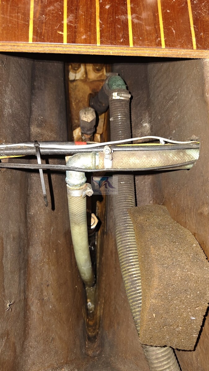 Calentador, Instalación aguas negras (ca. 40 l), Suelo interior de madera, Tomas de 12v, Enchufes de 220v, WC marino manual.