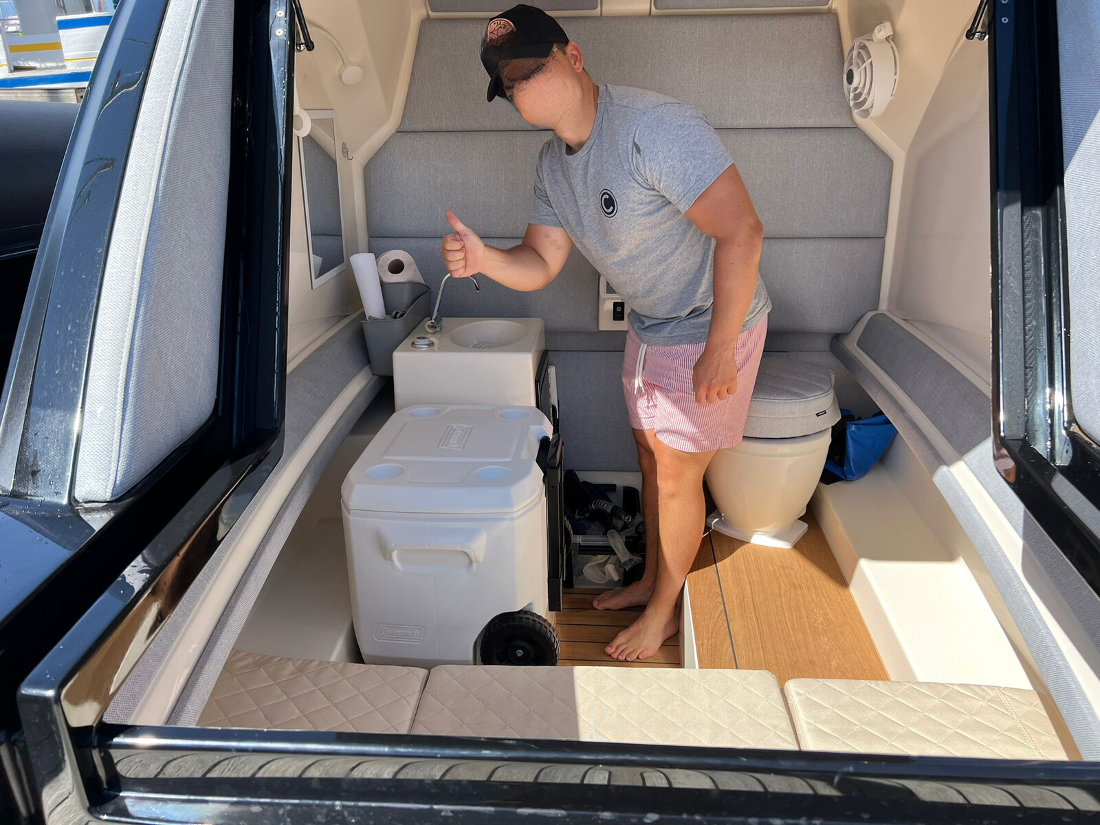 Para facilitar las maniobras, dispone de un molinete eléctrico con mando a distancia, un propulsor de proa y una dirección electro-hidráulica. La comodidad también está garantizada gracias a la lona de sombra, las mesas en la parte delantera y trasera, la ducha de cubierta y los WC eléctricos.
