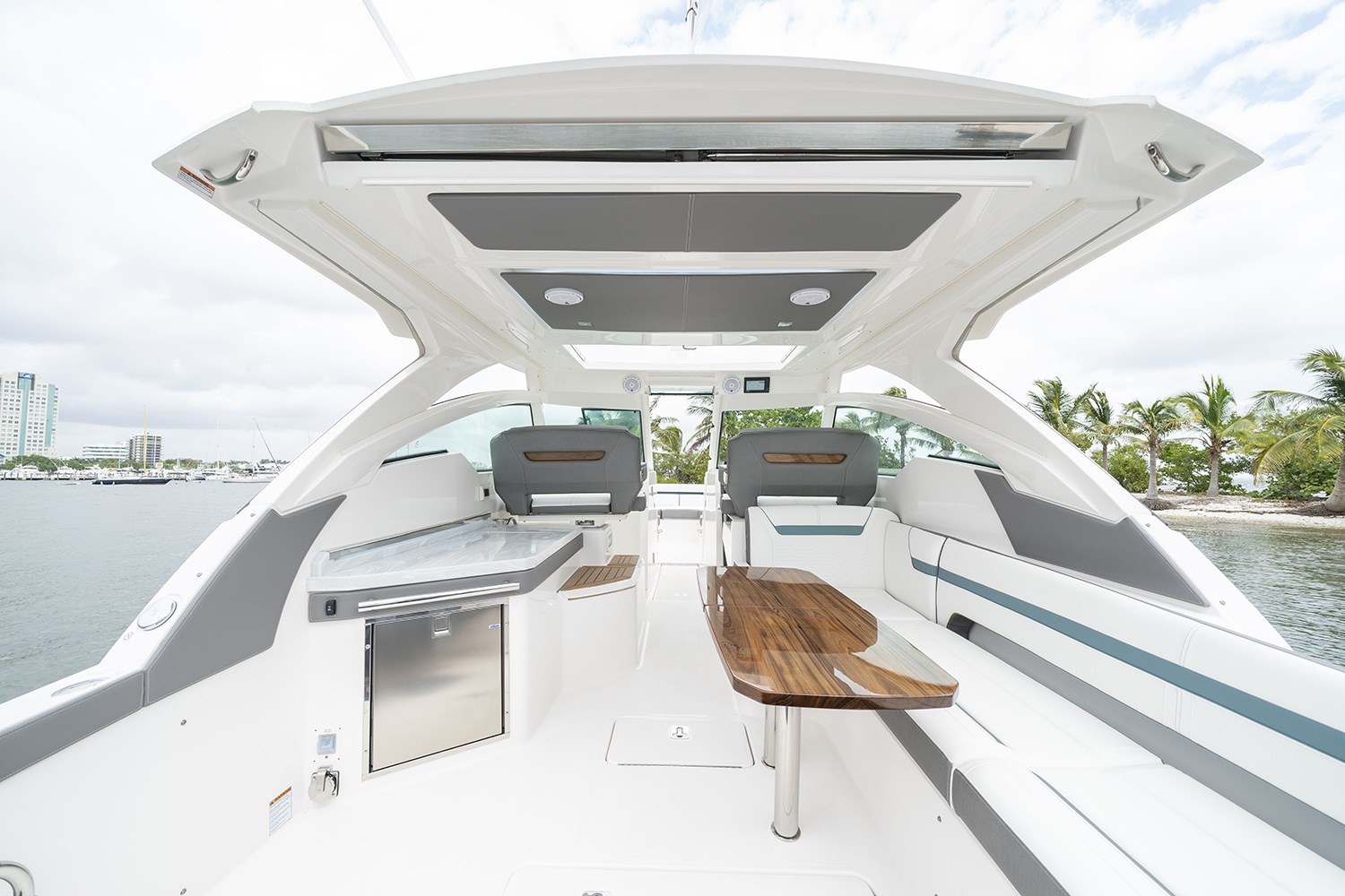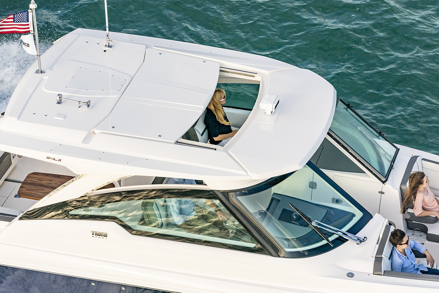 The 34 LX is the first Luxury Crossover model from the Tiara Sport brand. The 34 LX provides comfortable bow rider seating accessed via a centerline pass thru as well as transformational aft seating that offers the ability to enlarge or reduce the cockpit size based on guest’s needs aboard. The 34 LX was introduced to an enthusiastic crowd at the 2018 Fort Lauderdale International Boat Show. Tiara Sport Dealer and Media Partners as well as guests of the show were able to board the 34 LX for a closer look. “We saw a great turnout at the 2018 Lauderdale Show; not only did we launch the 34 LX, but we also displayed our 34 and 38 LS models – the entire Tiara Sport line was present. The 34 LX complements our Tiara Sport LS products and further enhances the Sport product lineup. We’re building our presence in the outboard powered market and will continue to do so with additional new model launches for our Sport brand.” Dave O’Connell, VP of Sales, Tiara Yachts and Tiara Sport. Call for more details.