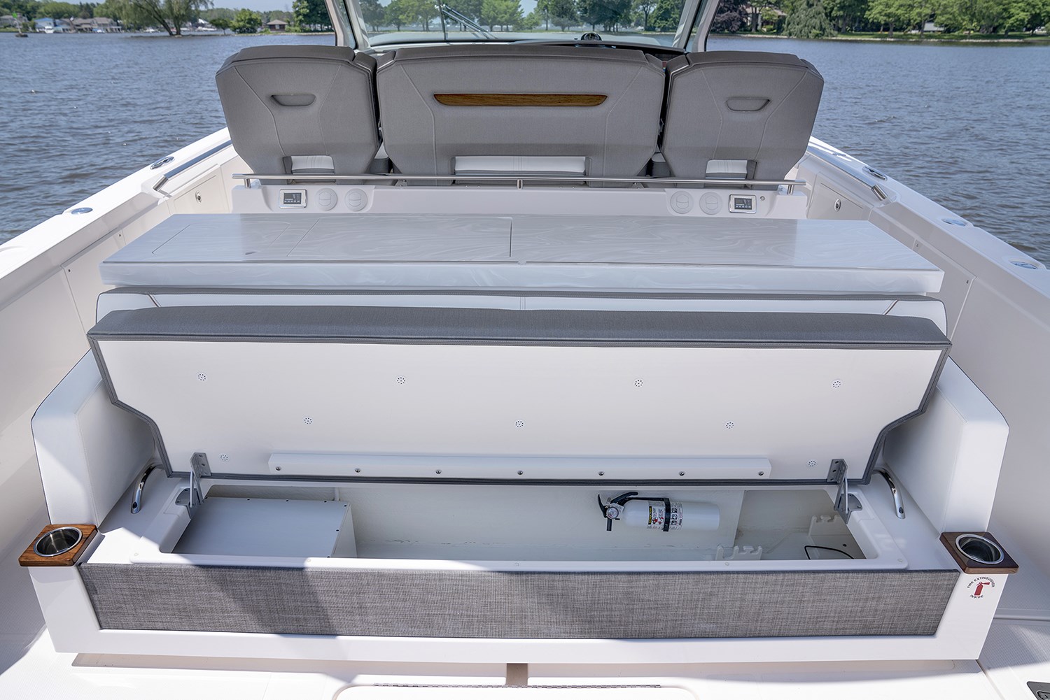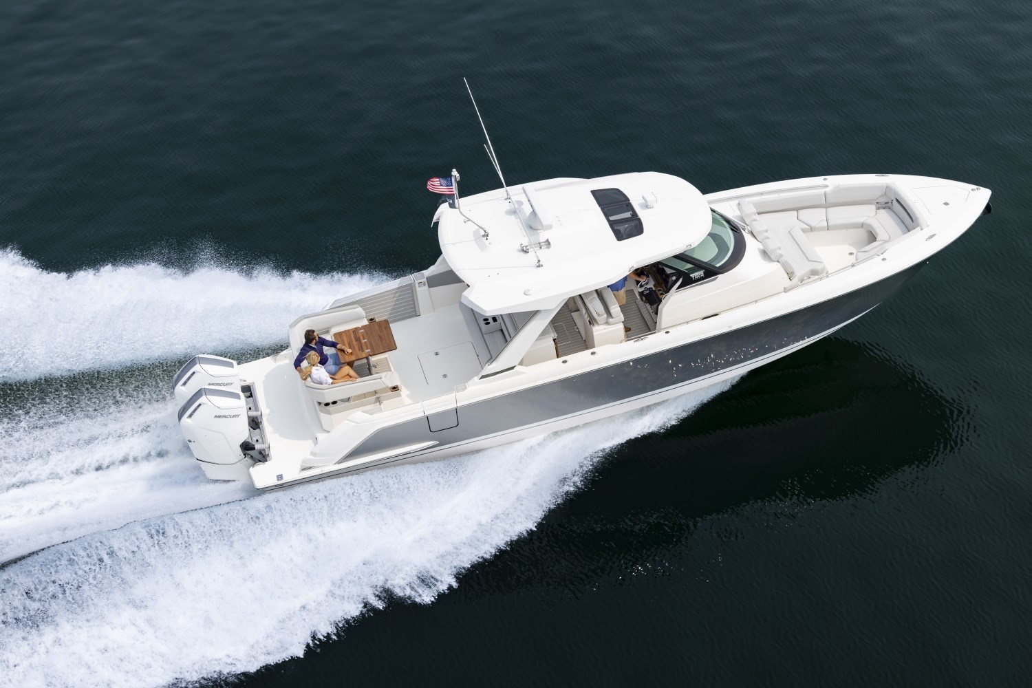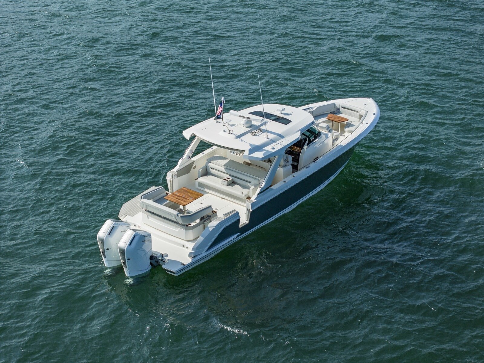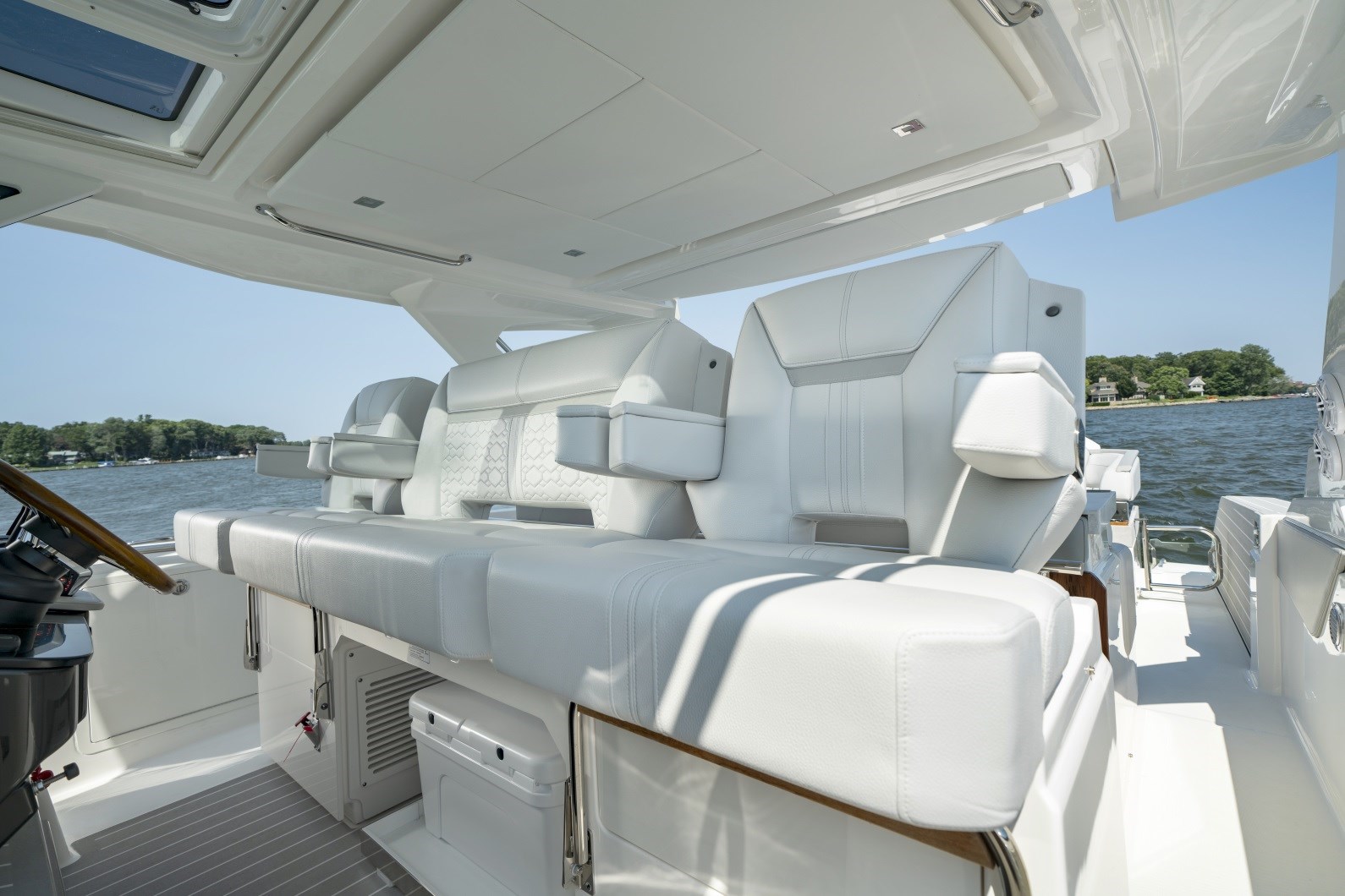 THE THIRD MODEL IN THE TIARA SPORT LS SERIES, THE 43 LS, COMBINES THE AESTHETIC OF SPORT STYLING WITH THE LUXURIOUS AMENITIES AND DETAILS SYNONYMOUS WITH THE TIARA SPORT BRAND. GUESTS CAN CHOOSE FROM MULTIPLE SOCIAL ZONES FOR RELAXATION AND LEISURE. FORWARD, THE BOW FEATURES WRAP AROUND SEATING WITH A RECLINING LOUNGE. THE HELM SEATS FOUR COMFORTABLY, WITH STANDING ROOM AND A LEANING BOLSTER JUST AFT, PROVIDING A SECURE ZONE FOR MORE GUESTS WHILE UNDERWAY. A SIDE BOARDING DOOR LOCATED PORTSIDE PRESENTS ACCESS TO YOUR FAVORITE WATER ACTIVITIES. THE INNOVATIVE AFT U-LOUNGE ROTATES 180 ALLOWING GUESTS TO FURTHER ENJOY THE SWIM PLATFORM AND BEAUTIFUL VIEWS. ENTERTAIN EVERYONE ABOARD FROM THE GALLEY, WELL EQUIPPED WITH SINK, REFRIGERATOR AND LARGE COUNTERTOP. BELOW DECK, COMFORTABLE ACCOMMODATIONS FOR FOUR AWAIT. CALL FOR MORE DETAILS.