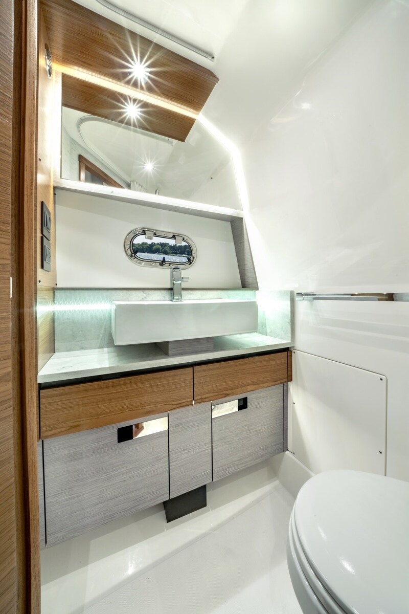 DAS DRITTE MODELL DER TIARA SPORT LS-SERIE, DER 43 LS, VERBINDET DIE ÄSTHETIK DES SPORT-STYLINGS MIT DEN LUXURIÖSEN ANNEHMLICHKEITEN UND DETAILS, DIE GLEICHBEDEUTEND MIT DER MARKE TIARA SPORT SIND. SIE KÖNNEN AUS MEHREREN SOZIALZONEN FÜR ENTSPANNUNG UND FREIZEIT WÄHLEN. FORWARD, THE BOW FEATURES WRAP AROUND SEATING WITH A RECLINING LOUNGE. DIE HELM SEATS VIER BEQUEM, MIT STANDING ROOM UND A LEANING BOLSTER JUST AFT, PROVIDING A SECURE ZONE FOR MORE GUESTS WHILE UNDERWAY. A SIDE BOARDING DOOR LOCATED PORTSIDE PRESENTS ACCESS TO YOUR FAVORITE WATER ACTIVITIES. THE INNOVATIVE AFT U-LOUNGE ROTATES 180 ALLOWING GUESTS TO FURTHER ENJOY THE SWIM PLATFORM AND BEAUTIFUL VIEWS. ENTERTAIN EVERYONE ABOARD AUS DER GALLEY, WELL EQUIPPED MIT SINK, COOLER UND LARGE COUNTERTOP. BELOW DECK, KOMFORTABLE UNTERKÜNFTE FÜR VIER AWAIT. RUFEN SIE NACH WEITEREN DETAILS.