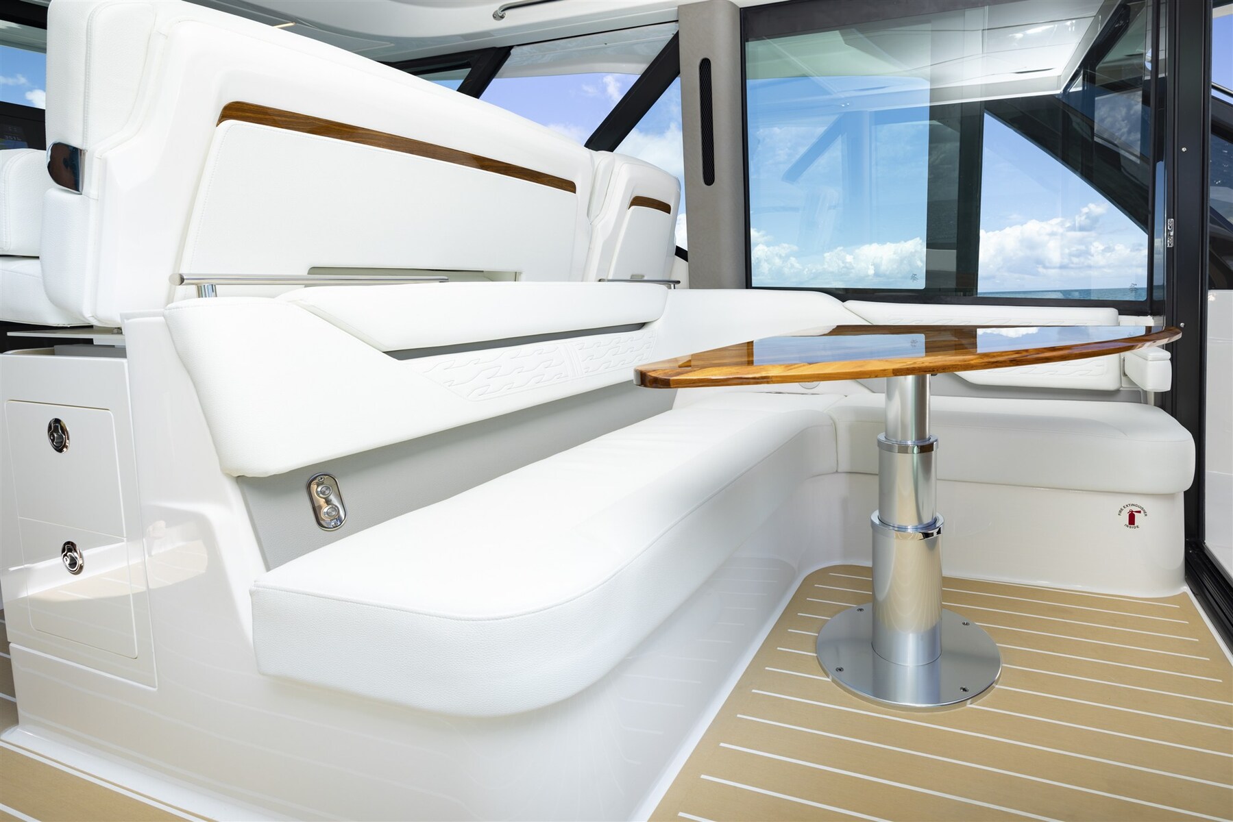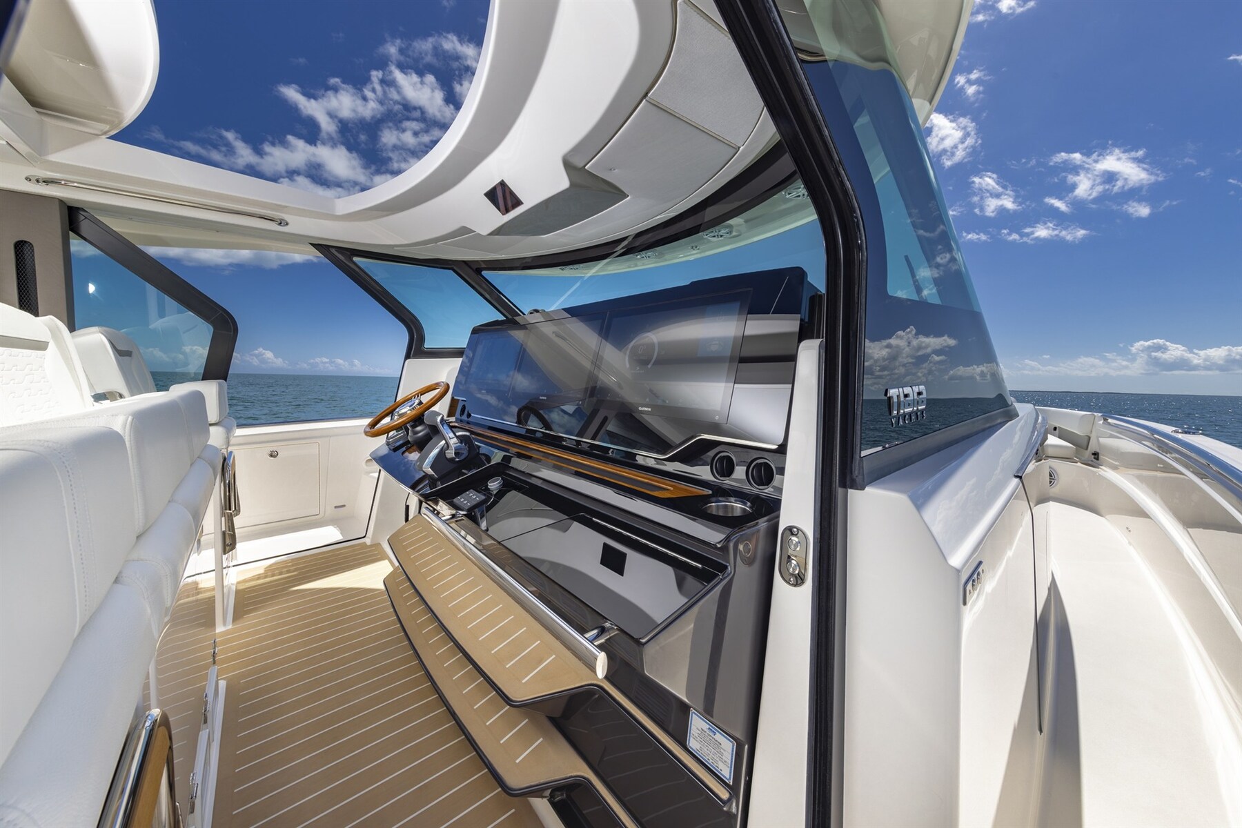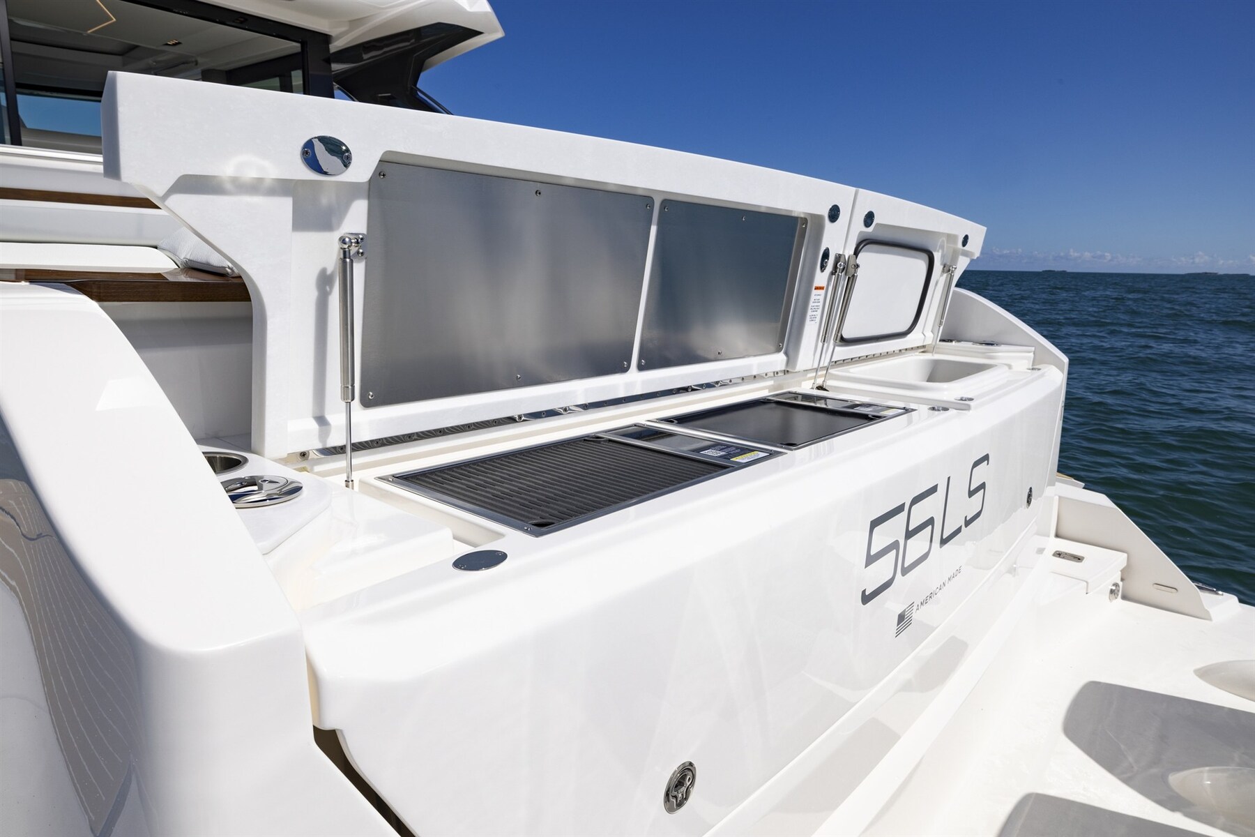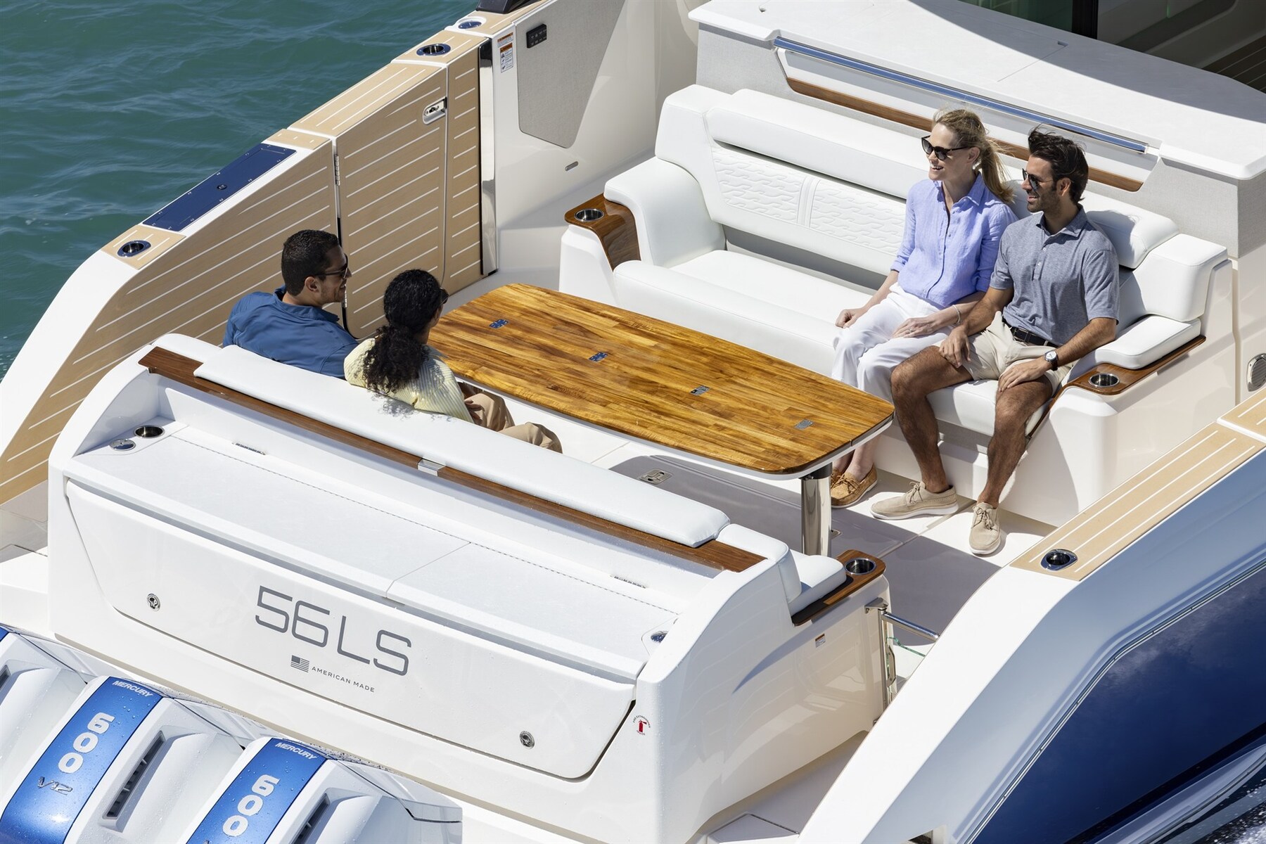 The legacy of the Luxury Sport series expands with the 56 LS, the largest and most ambitious outboard engine boat in Tiara Yachts' history. Outdoor enjoyment is maximized by multiple social zones, a well-appointed galley, and two twin terraces that expand the cockpit and provide unobstructed access to the water. Several aft cockpit module options, focused on entertainment and fishing, allow boats to be customized to each owner's preferences. With the ability to walk all the way around and the pilot house doors to port and starboard of the helm, you can enjoy unobstructed access to the spacious bow with lounge area. Below deck, two spacious cabins and two en-suite bathrooms offer luxurious accommodation for four people. With the unwavering strength of a Mercury® V12 engine, the 56 LS is powered by four 600 hp Verado® engines, providing a refined experience for the captain and guests thanks to soundproofing technology and revolutionary advancements in handling and control. The integrated electronics package includes instinctive Garmin® Marine navigation systems that provide the latest piloting technology. Contact us for more details.