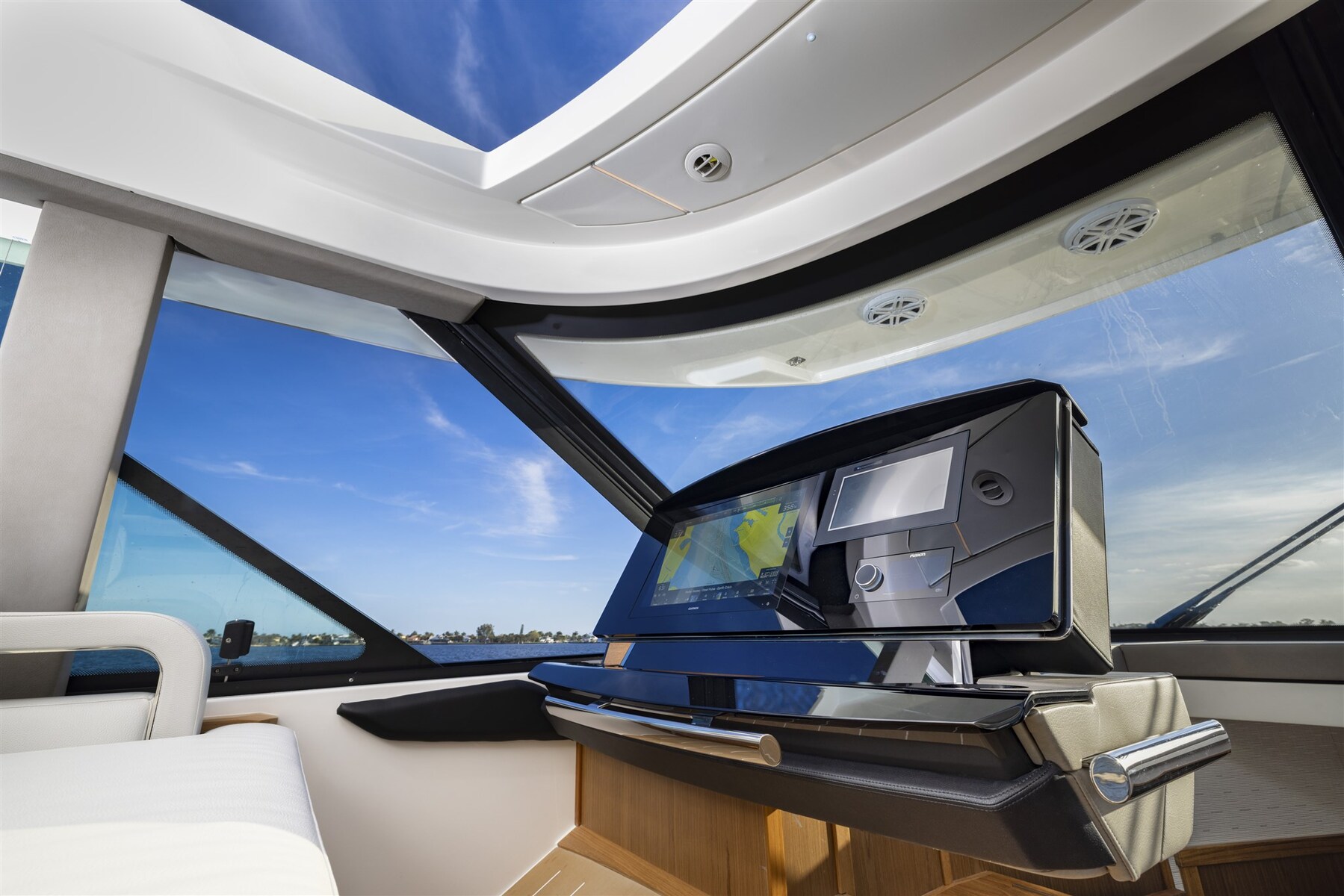Angolo barra, Comando motori elettronico, 2 Computer di bordo (Volvo), Contamiglia (Garmin), Ecoscandaglio (Garmin), GPS (Garmin), Joystick, Pilota automatico (Garmin), 2 Plotter (Garmin), Radio VHF (Garmin), Sedile Copilota.