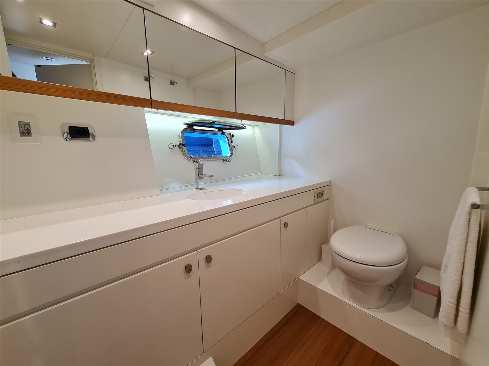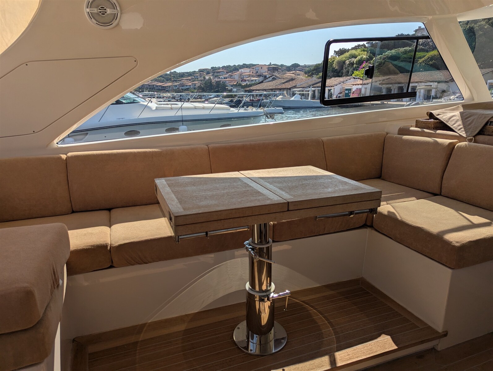 2 Motor Alarm, Bilge Alarm, Waterdruk systeem, Teak op gangboorden, Speciale kleur (azzurra), Buitendouche, Verstelbaar zoeklicht (con remote control), Hydraulische trimflappen, Hardtop, Brandblussysteem, Sfeerverlichting, Onderwater Verlichting, Loopplank (elettroidraulica), Platform, 3 Automatische bilgepomp, Ingangsdeur, Teak in kuip, Walaansluiting 230V, Gelijkrichter, Elektrische ankerlier, Zwemtrap, Kuiptafel (in dinette), Hoorn.