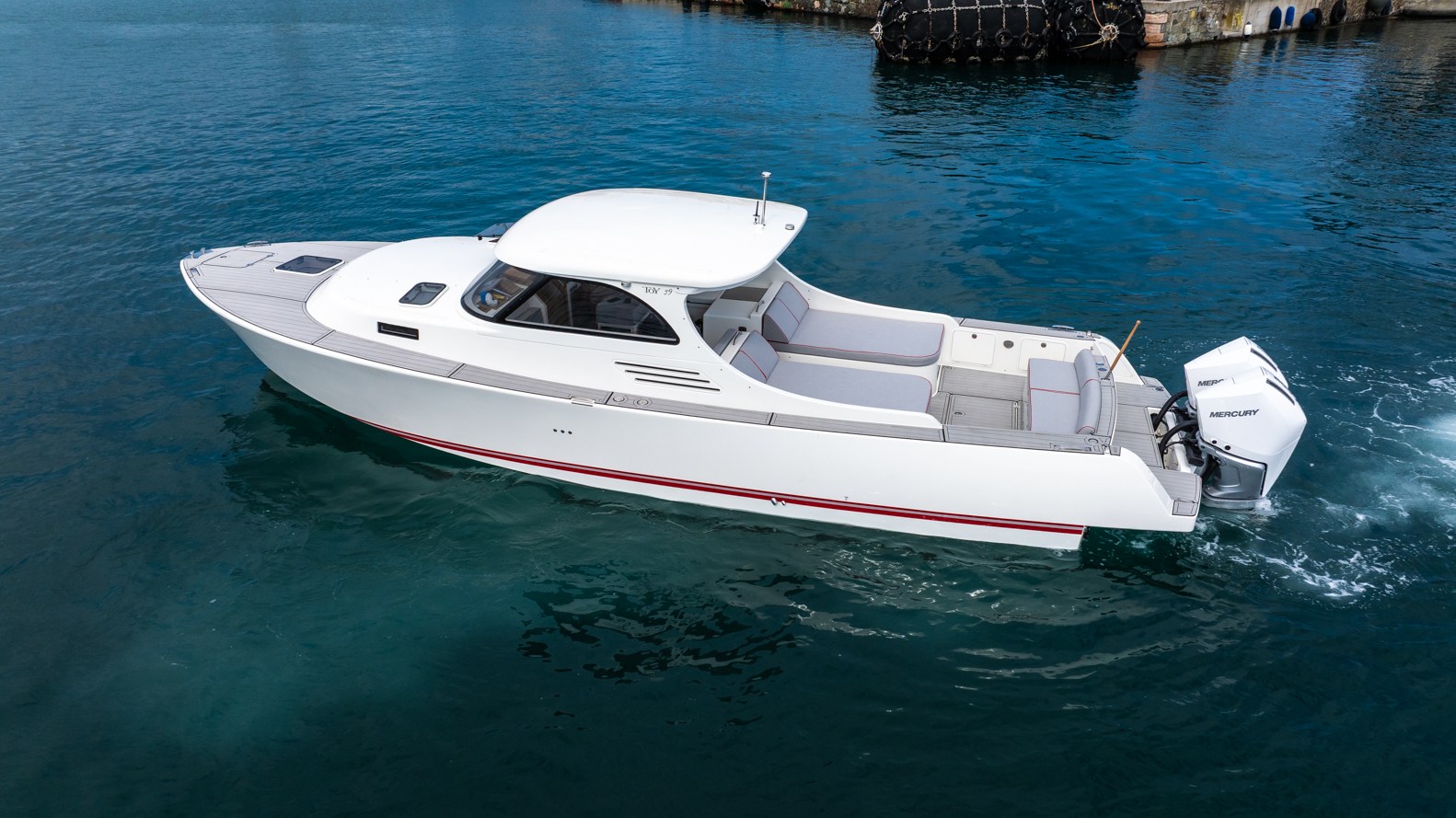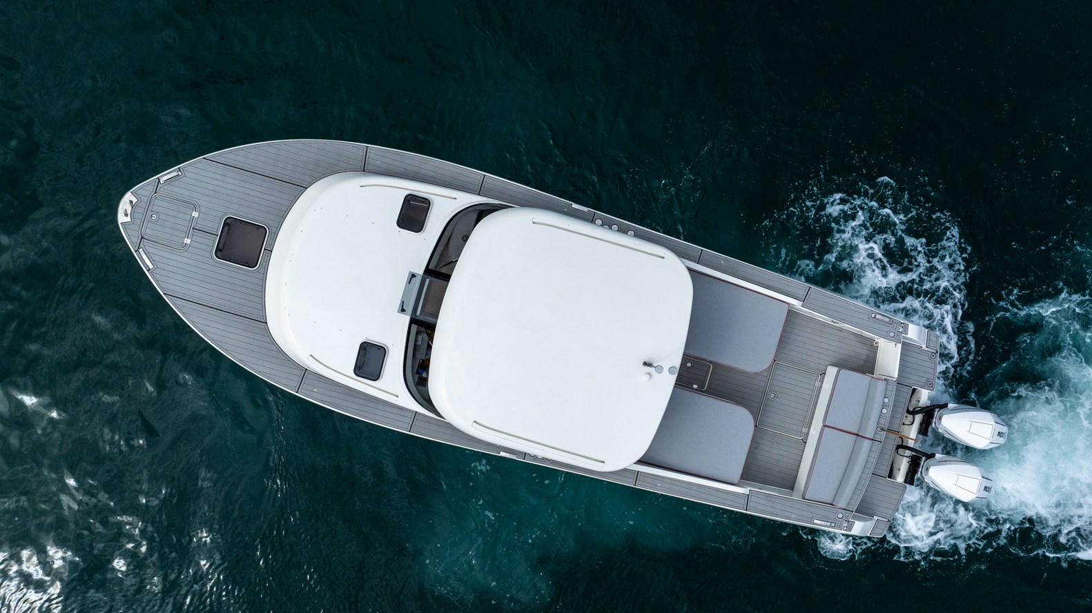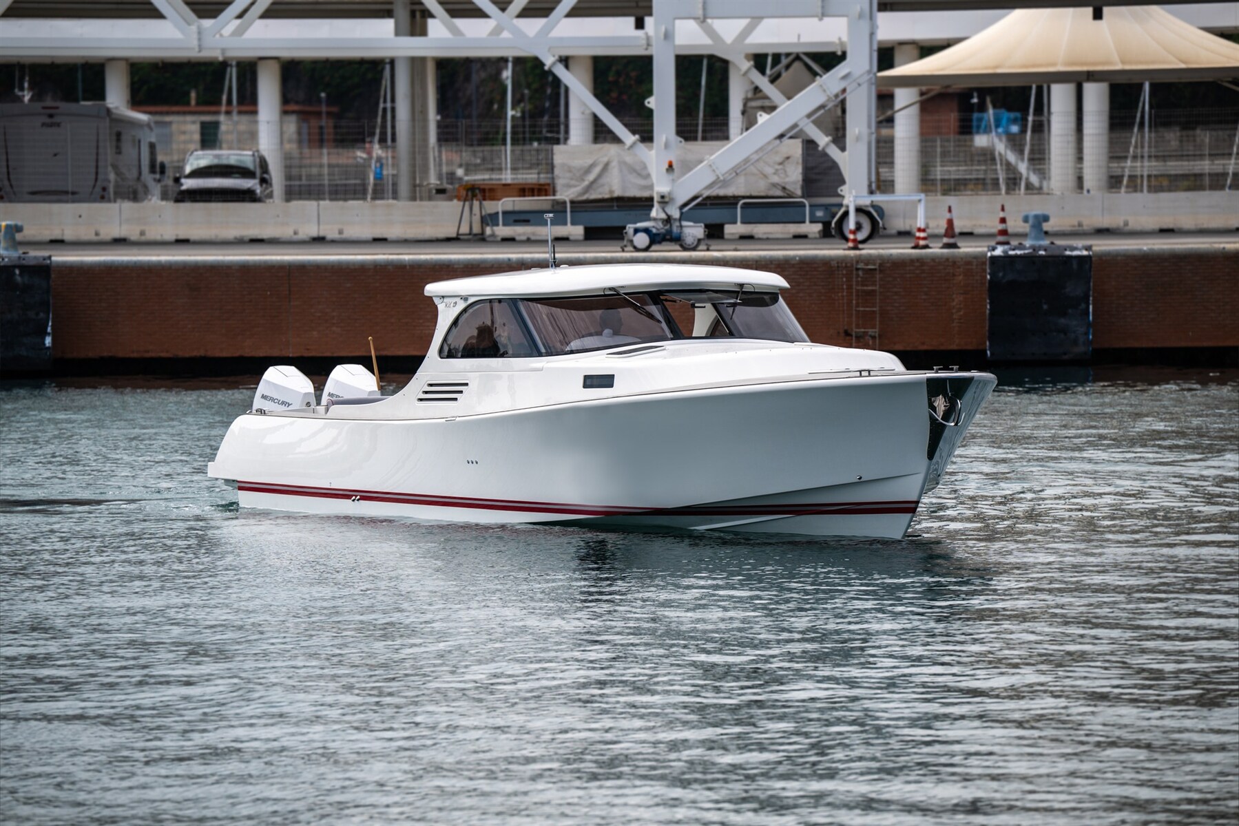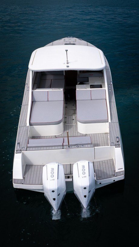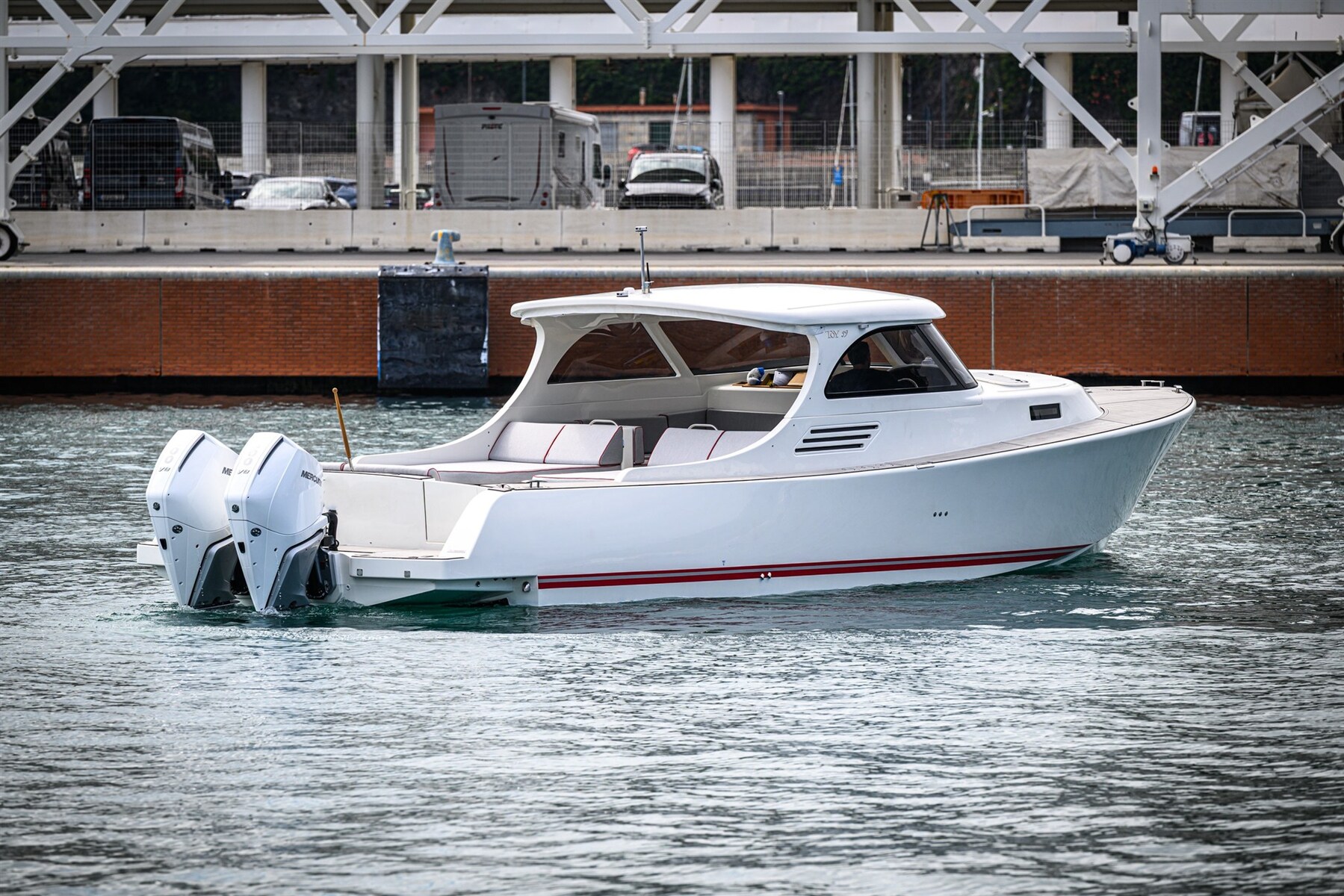 Le hors-bord Toy 39 est proposé avec deux moteurs de 300 chevaux, harmonieusement intégrés dans les lignes classiques, mais avec un style sportif typique des bateaux équipés de ce moteur. Le hors-bord Toy 39 pourra atteindre une vitesse de croisière de 35 nœuds tout en conservant le maximum de sécurité et de confort de la version classique. De nouvelles lignes de flottaison ont été développées pour ce modèle afin de mieux gérer la puissance des moteurs hors-bord et les hautes performances garanties par ces moteurs. Le nouveau carénage a été conçu pour pouvoir gérer en toute sécurité des puissances encore plus grandes fournies par différents moteurs. Les hautes performances des moteurs et la coque en V profond lui permettent d’atteindre des vitesses élevées sans sacrifier la stabilité, même dans une mer agitée. Ce type de propulsion permet également d’obtenir un bateau plus léger, donc plus performant et avec une consommation plus faible. De plus, la simplification des systèmes et l’accessibilité des moteurs permettent une maintenance facilitée. Un bateau idéal pour ceux qui aiment la performance sans sacrifier un design élégant et classique.