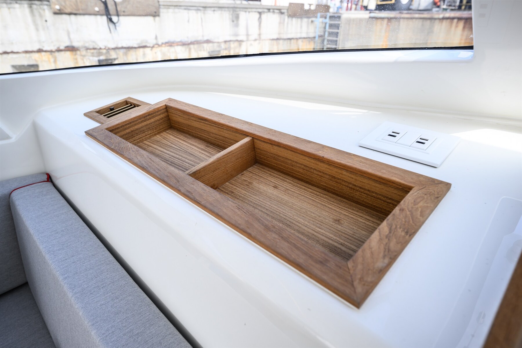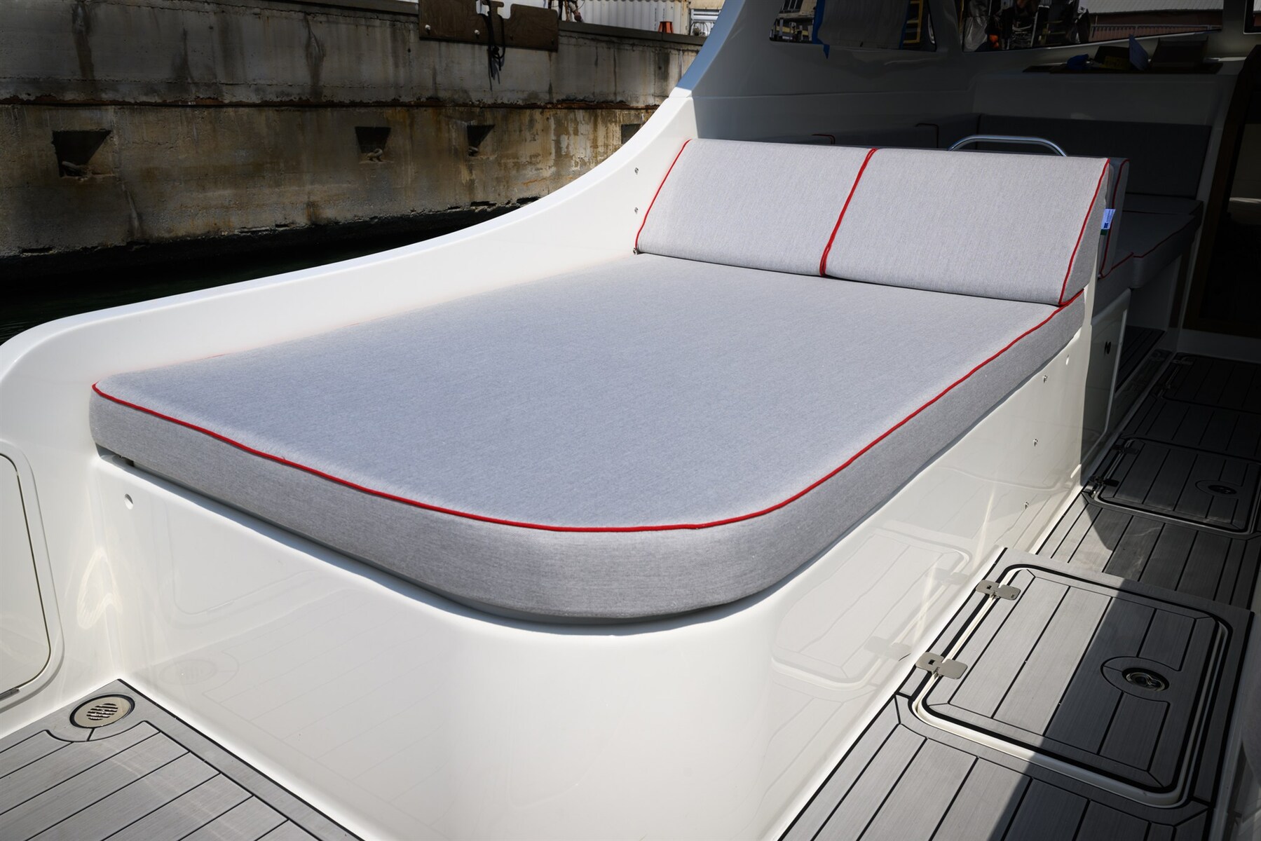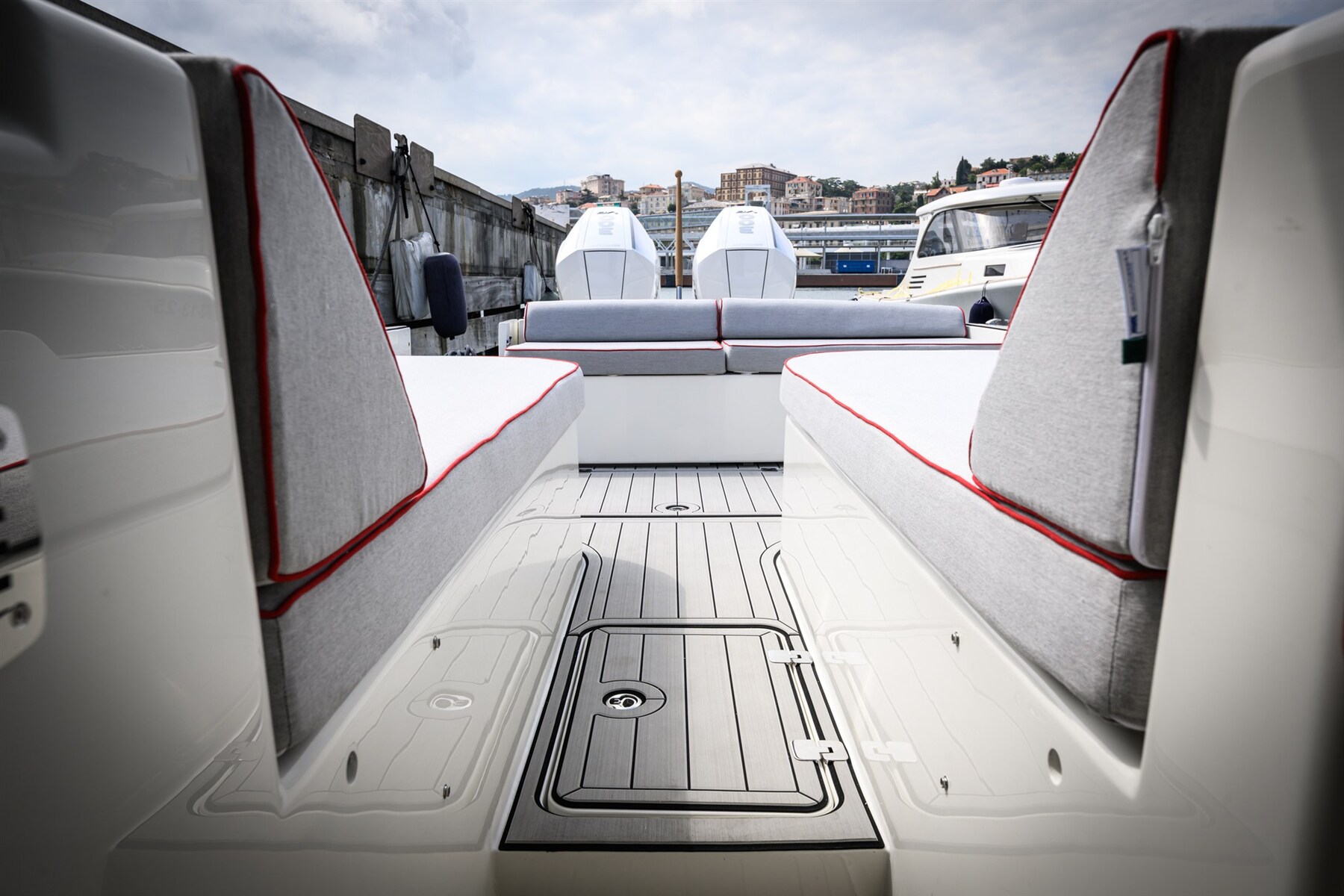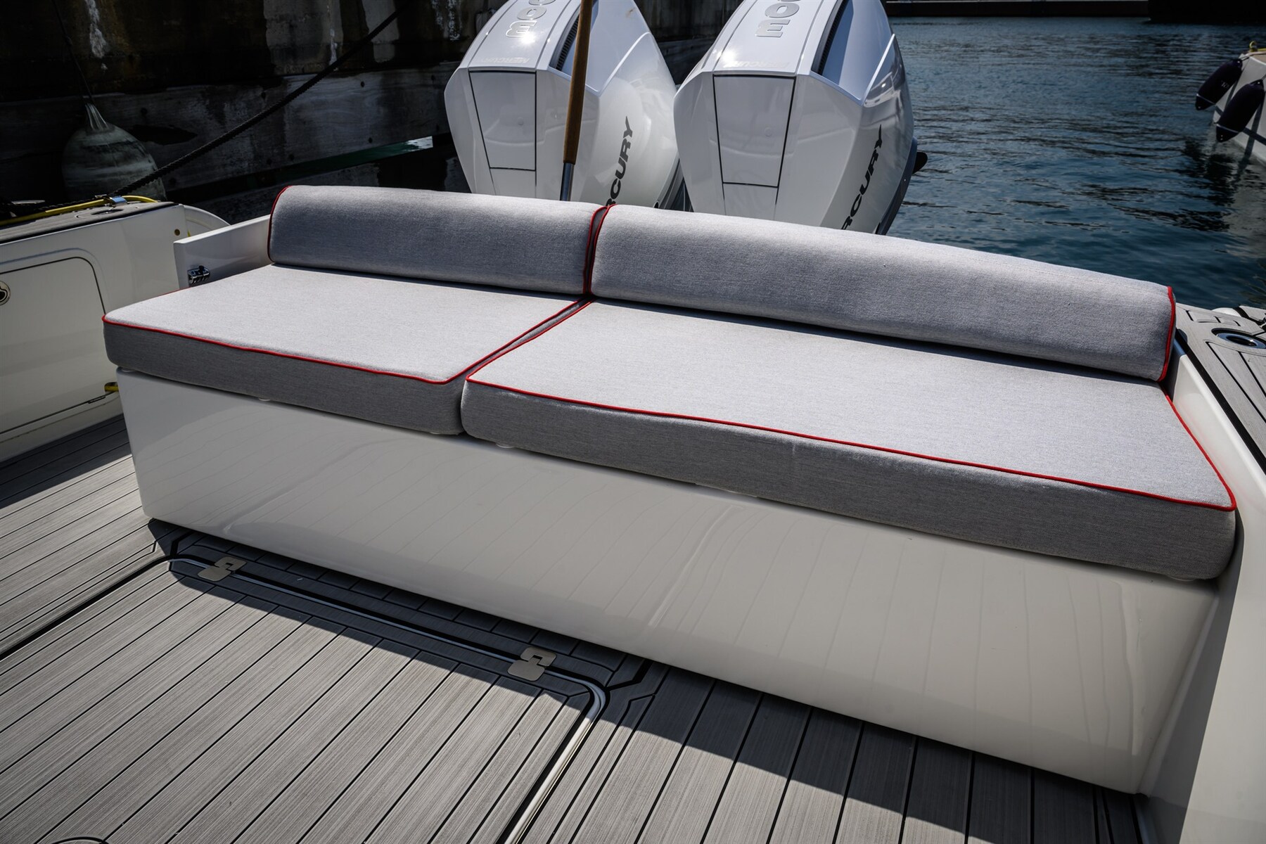 Der Außenborder Toy 39 wird mit zwei 300-PS-Motoren angeboten, die sich harmonisch in die klassischen Linien einfügen, aber mit einem sportlichen Stil, der für Boote mit diesem Motor typisch ist. Der Außenborder Toy 39 wird in der Lage sein, eine Reisegeschwindigkeit von 35 Knoten zu erreichen und dabei die maximale Sicherheit und den Komfort der klassischen Version beizubehalten. Für dieses Modell wurden neue Wasserleitungen entwickelt, um die Leistung der Außenbordmotoren und die von diesen Motoren garantierte hohe Leistung besser zu verwalten. Die neue Verkleidung wurde entwickelt, um noch größere Leistungen verschiedener Motoren in völliger Sicherheit bewältigen zu können. Die hohe Leistung der Motoren und der tiefe V-Rumpf ermöglichen es, auch bei rauer See hohe Geschwindigkeiten zu erreichen, ohne die Stabilität zu beeinträchtigen. Diese Art des Antriebs ermöglicht auch ein leichteres Boot, das daher leistungsfähiger ist und einen geringeren Verbrauch hat. Darüber hinaus ermöglichen die Vereinfachung der Systeme und die Zugänglichkeit der Motoren eine einfachere Wartung. Ein ideales Boot für diejenigen, die Leistung lieben, ohne auf ein elegantes und klassisches Design zu verzichten.