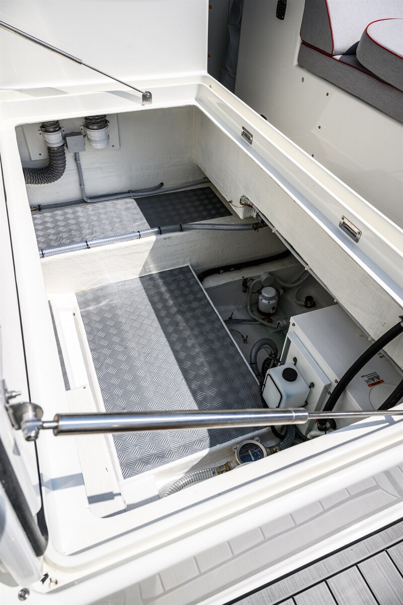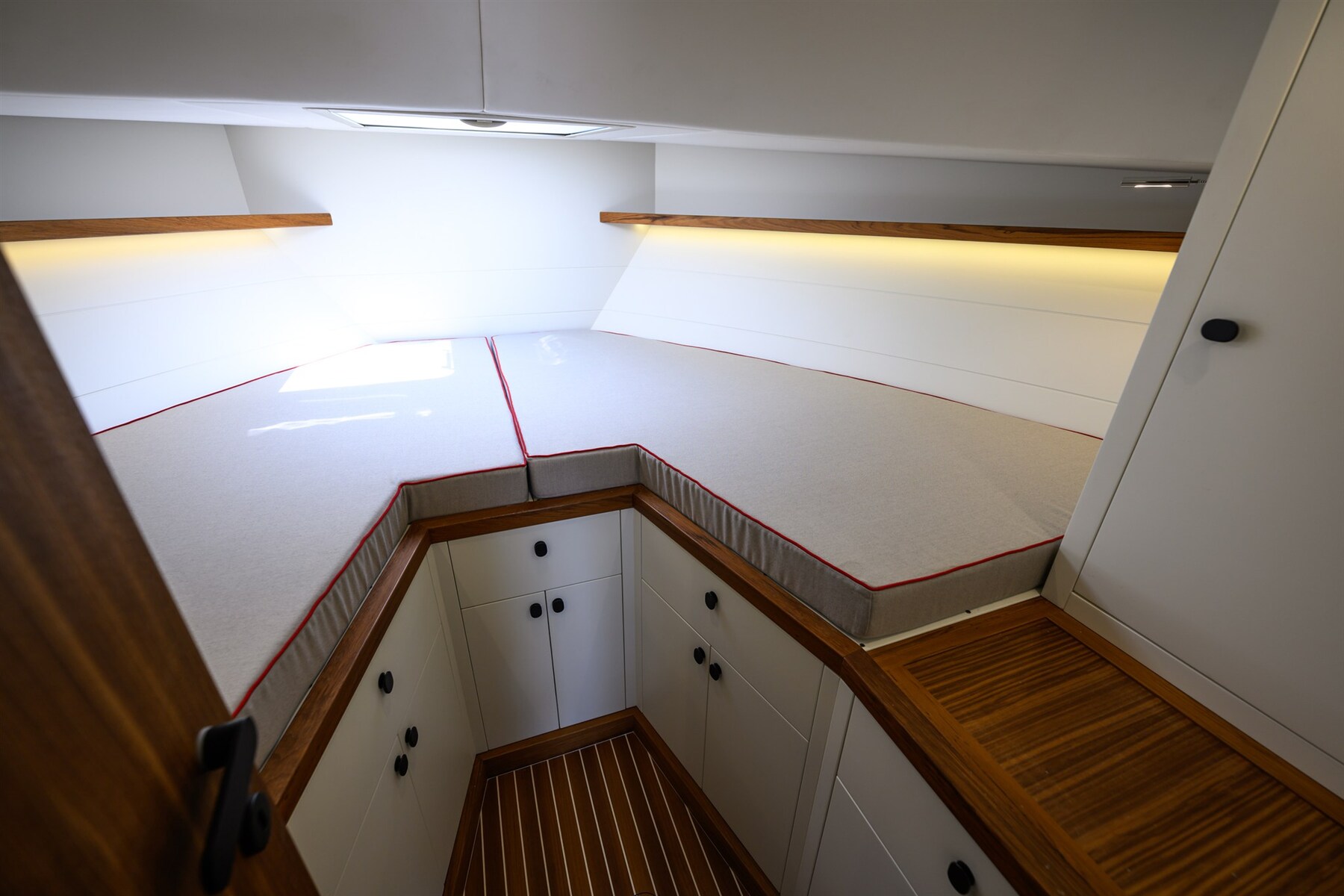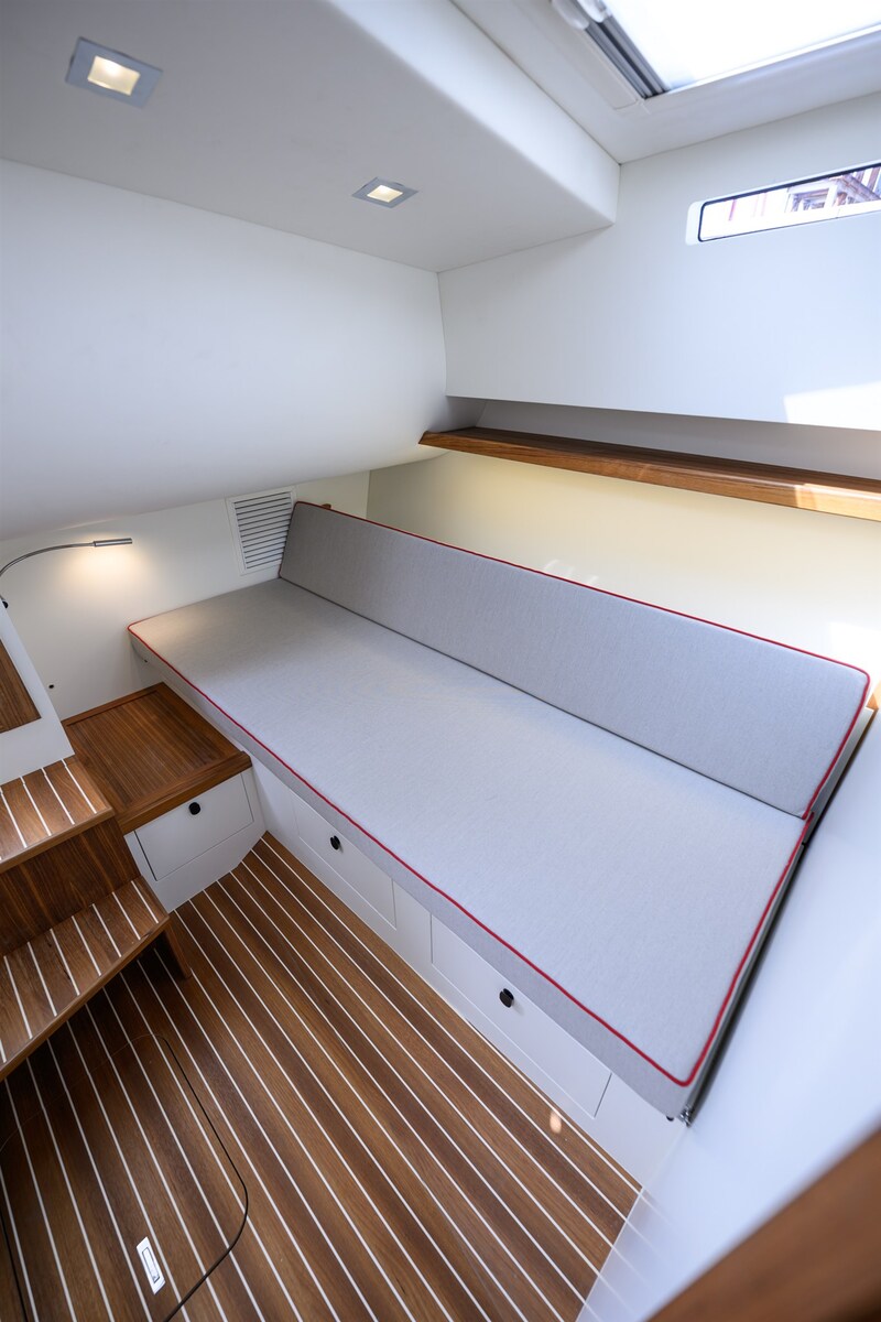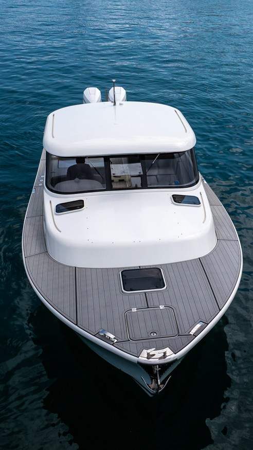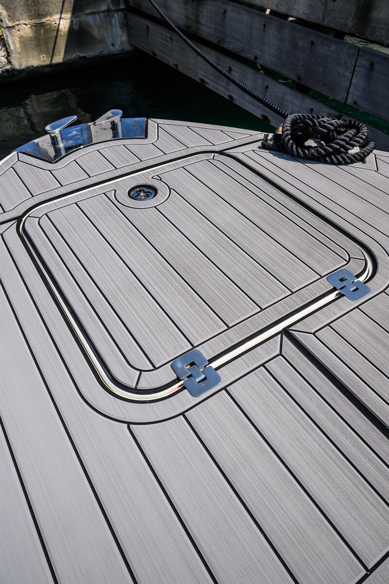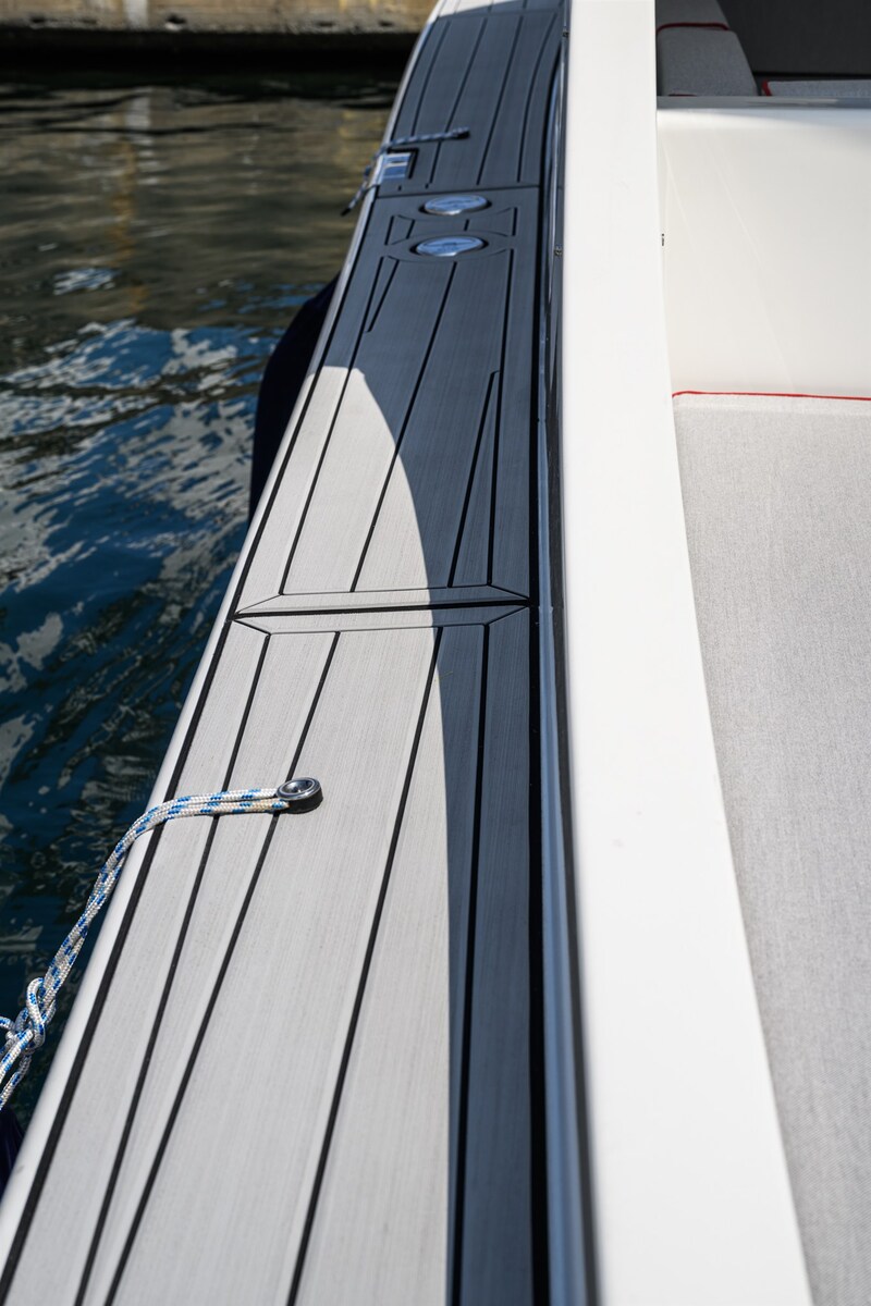 Der Außenborder Toy 39 wird mit zwei 300-PS-Motoren angeboten, die sich harmonisch in die klassischen Linien einfügen, aber mit einem sportlichen Stil, der für Boote mit diesem Motor typisch ist. Der Außenborder Toy 39 wird in der Lage sein, eine Reisegeschwindigkeit von 35 Knoten zu erreichen und dabei die maximale Sicherheit und den Komfort der klassischen Version beizubehalten. Für dieses Modell wurden neue Wasserleitungen entwickelt, um die Leistung der Außenbordmotoren und die von diesen Motoren garantierte hohe Leistung besser zu verwalten. Die neue Verkleidung wurde entwickelt, um noch größere Leistungen verschiedener Motoren in völliger Sicherheit bewältigen zu können. Die hohe Leistung der Motoren und der tiefe V-Rumpf ermöglichen es, auch bei rauer See hohe Geschwindigkeiten zu erreichen, ohne die Stabilität zu beeinträchtigen. Diese Art des Antriebs ermöglicht auch ein leichteres Boot, das daher leistungsfähiger ist und einen geringeren Verbrauch hat. Darüber hinaus ermöglichen die Vereinfachung der Systeme und die Zugänglichkeit der Motoren eine einfachere Wartung. Ein ideales Boot für diejenigen, die Leistung lieben, ohne auf ein elegantes und klassisches Design zu verzichten.