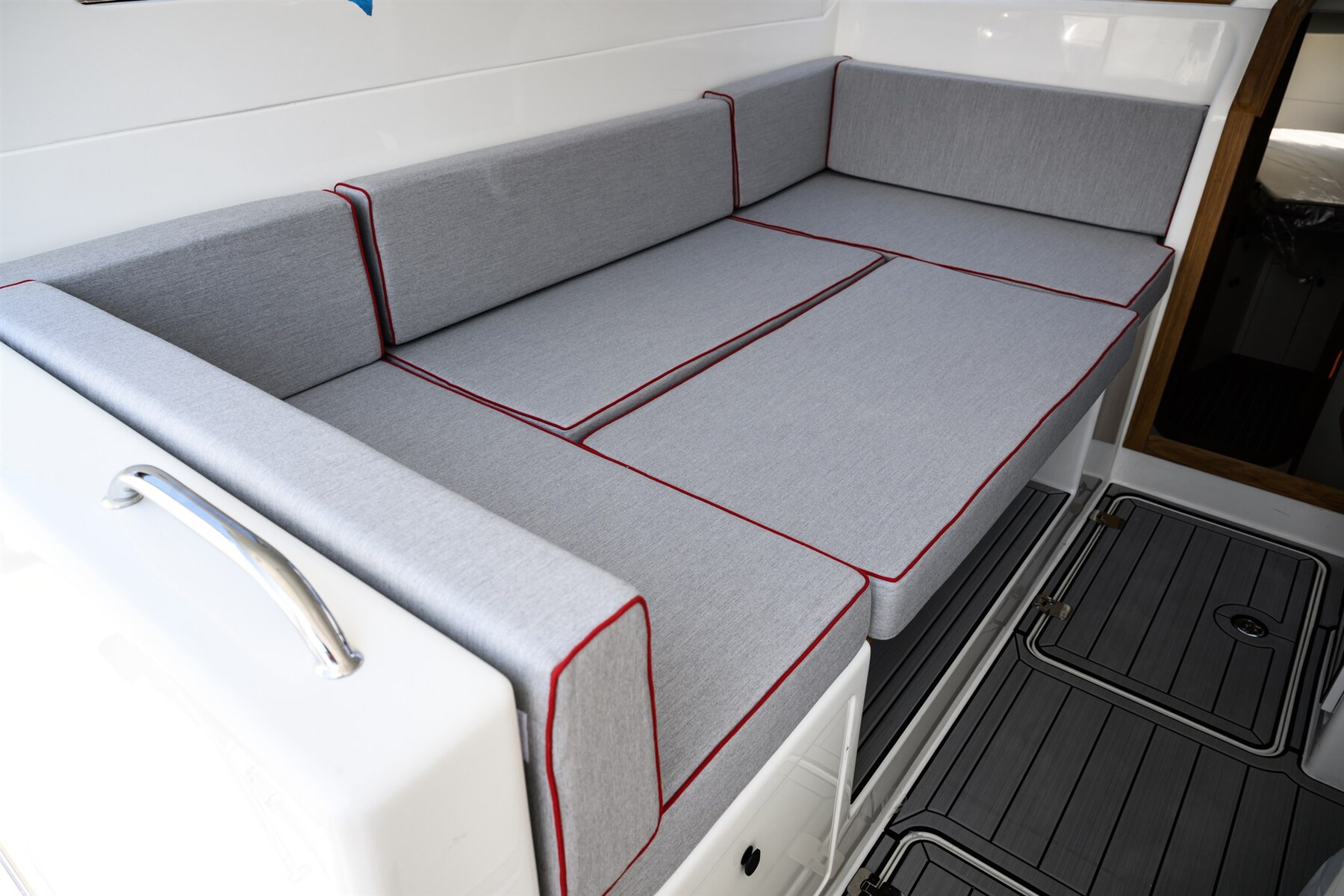 Cockpit Cover (invernale), Stern Cushions (e cuscino copri tavolo dinette esterna), Bow Cushions, T-Top Cover (chiusura dinette), Window Cover, Sunshade (di poppa con candelieri).