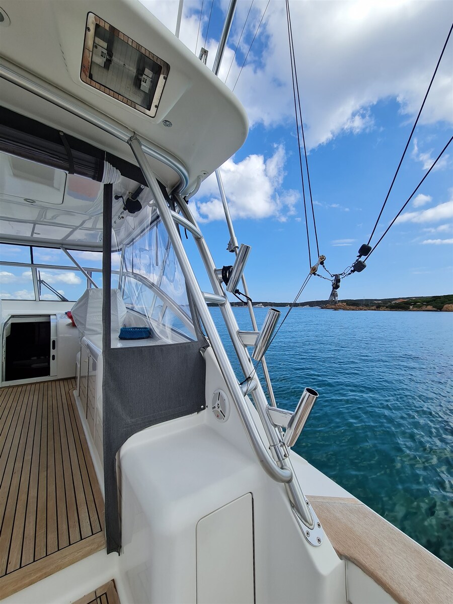 Fume/Gas Detector, 2 Engine Alarm, Bilge Alarm, Water pressure pump, 8 Batteries, Special Colour, Deck Shower, Headlights fixed on the stem, Hydraulic Flaps, Hard top (Con chiusure laterali e drop curtain), Fire Extinguishing System, Courtesy Lights, Gangway (Idraulica a 3 stadi), Platform, 3 Automatic Bilge Pump, Manual Bilge Pump, Entry door, Teak Cockpit, Shorepower connector, Water harbor connector system, Voltage Rectifier, Electric Windlass, swimming ladder, Horn, Bow Winches.