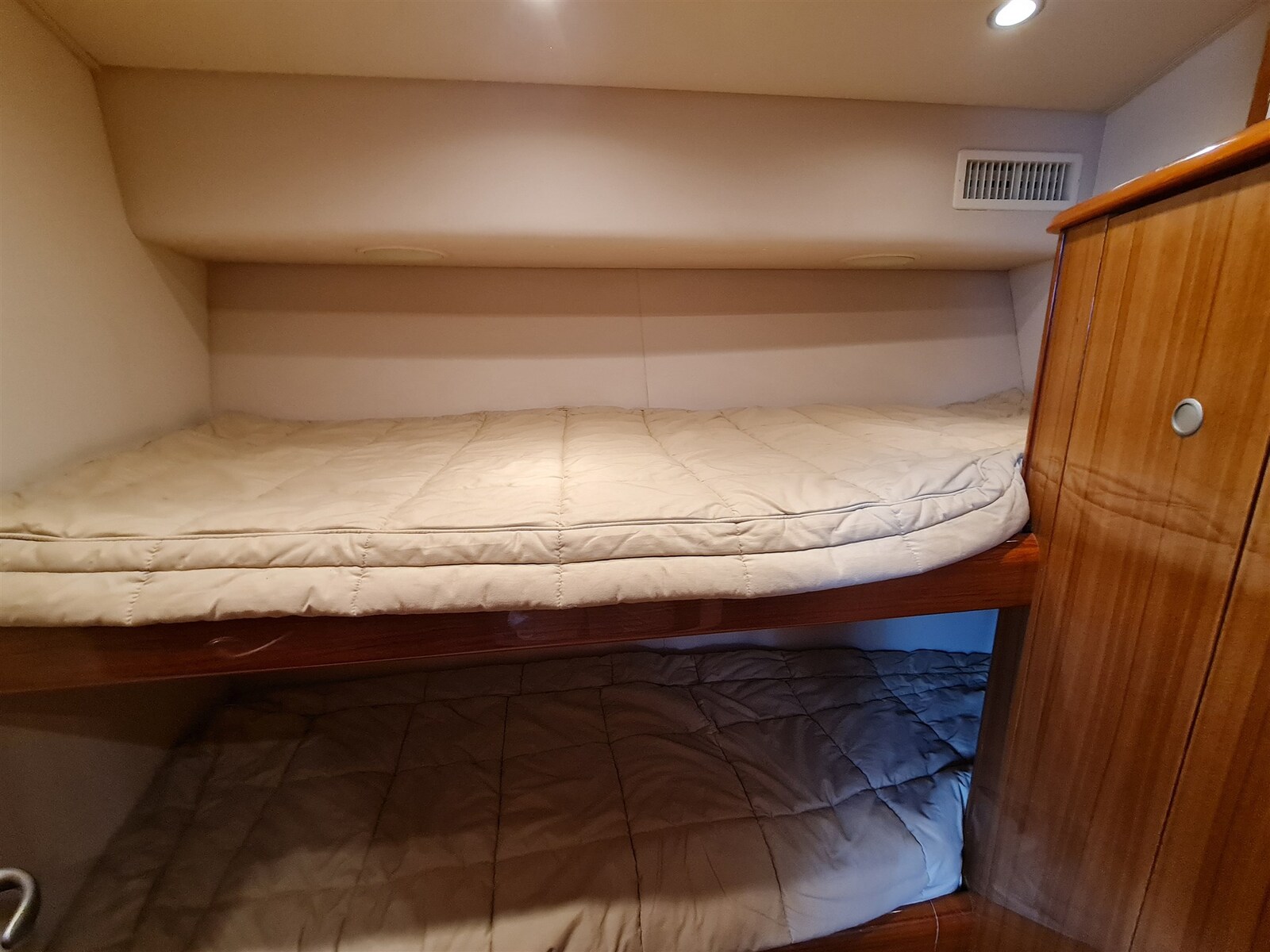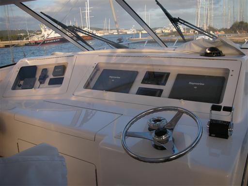 Este hermoso barco está en la Agencia Central en Given For Yachting. Al igual que todos los vikingos, el 45 Open ha sido criado para ofrecer un rendimiento estelar en el duro entorno que regularmente experimentan los pescadores de torneos. La visibilidad desde el timón de la línea central es excepcional, lo que hace que el 45 Open sea tan fácil de maniobrar en alta mar como en un puerto deportivo lleno de gente. Los timones de acero inoxidable de alta velocidad combinados con la dirección hidráulica asistida por energía proporcionan control de la yema de los dedos. La electrónica de navegación se esconde cuidadosamente detrás de paneles de acrílico transparente, lo que hace que el equipo sea totalmente accesible, pero protegido de forma segura contra el clima y el rocío. Un compartimiento separado acomoda el equipo de comunicación. Los honorarios de comisión también son adeudados por el Comprador.