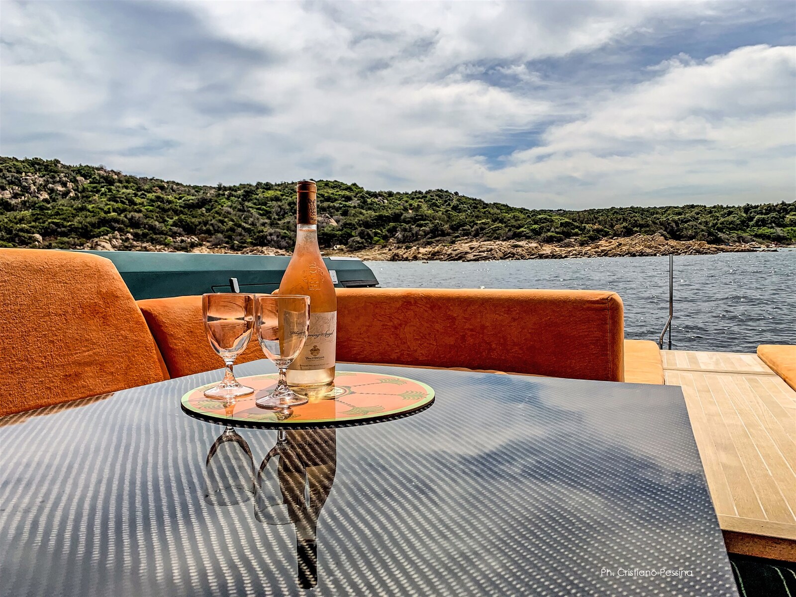 Cojines de popa, Cojines de proa, Toldo (parasole con candelieri).