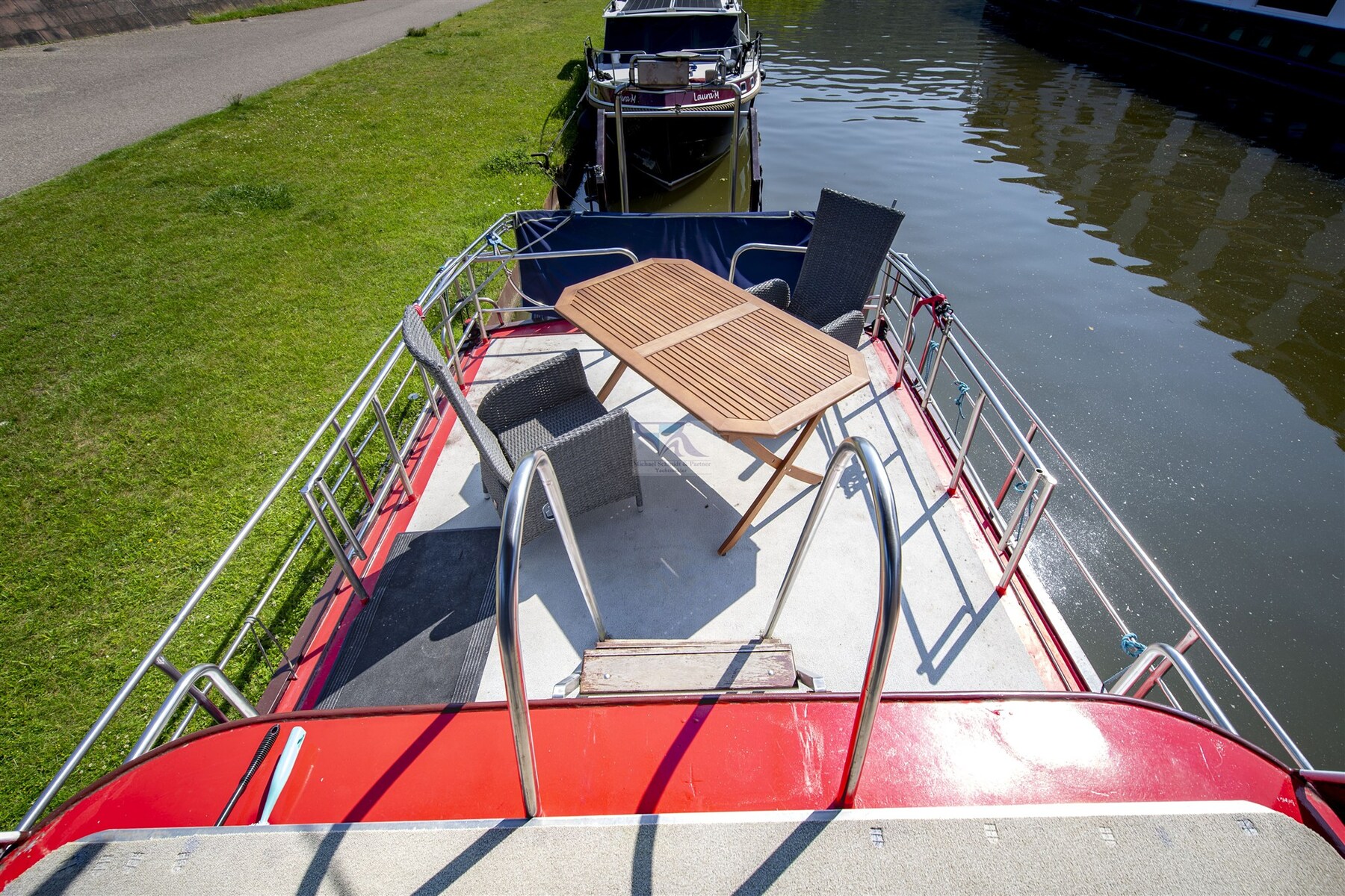2 Anker (mit Ankerkette 20 mm u. ca. 30 m Klippanker / zweiter Wurfanker), 2 Waterdruk systeem, 5 Accu's (1 x Motor, 4 x Bordnetz, Ective Gel Deep Cycle jeweils 290Ah (Neu 2023)), Dubbele besturing, Kraan voor bijboot (mit elektrischer Winde (Neu 2012)), Hulpmotor (Mercedes OM 636), Zonnepanelen (Solaranlage 300W, Steka Laderegeler 30A inkl. Wechselrichter und Steuerung (2021)), Platform (Badeplattform), Ingangsdeur, 2 Zijdeur, Walaansluiting 230V, Elektrische ankerlier ((2021, Lohfrans Typ Cayman, 1000 W/24V)), Gangboord, Zwemtrap (mit Edelstahl-Badeleiter und zwei Halterungen für Außenbordmotor), 2 Buitenboordmotor motorsteun.