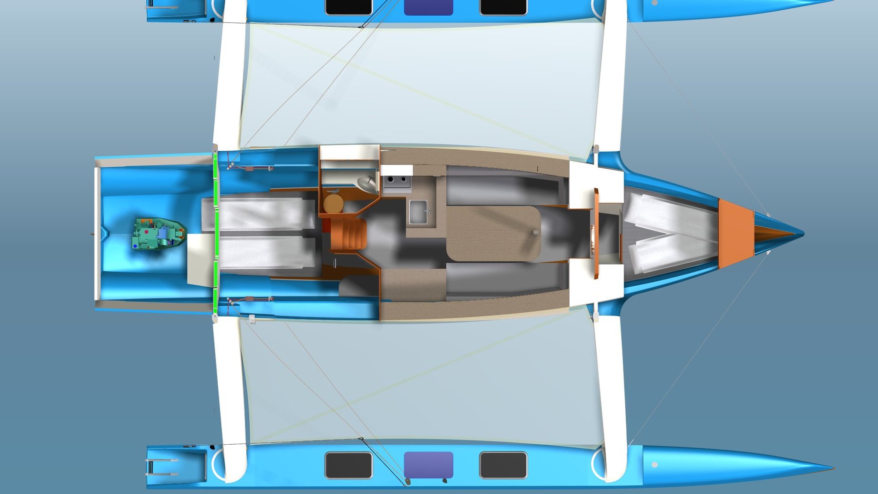 This is the ship's largest boat so far, the shipyard believes that demand for large multi-hull boats increases. Demand for larger catamarans has increased and the yard wants to take part in this trend and offer a trimaran which, with its retractable pontoons, does not take so much space in a port.