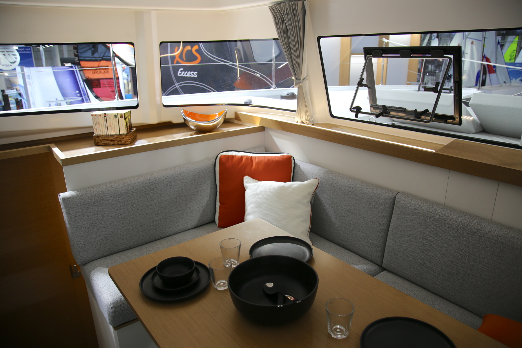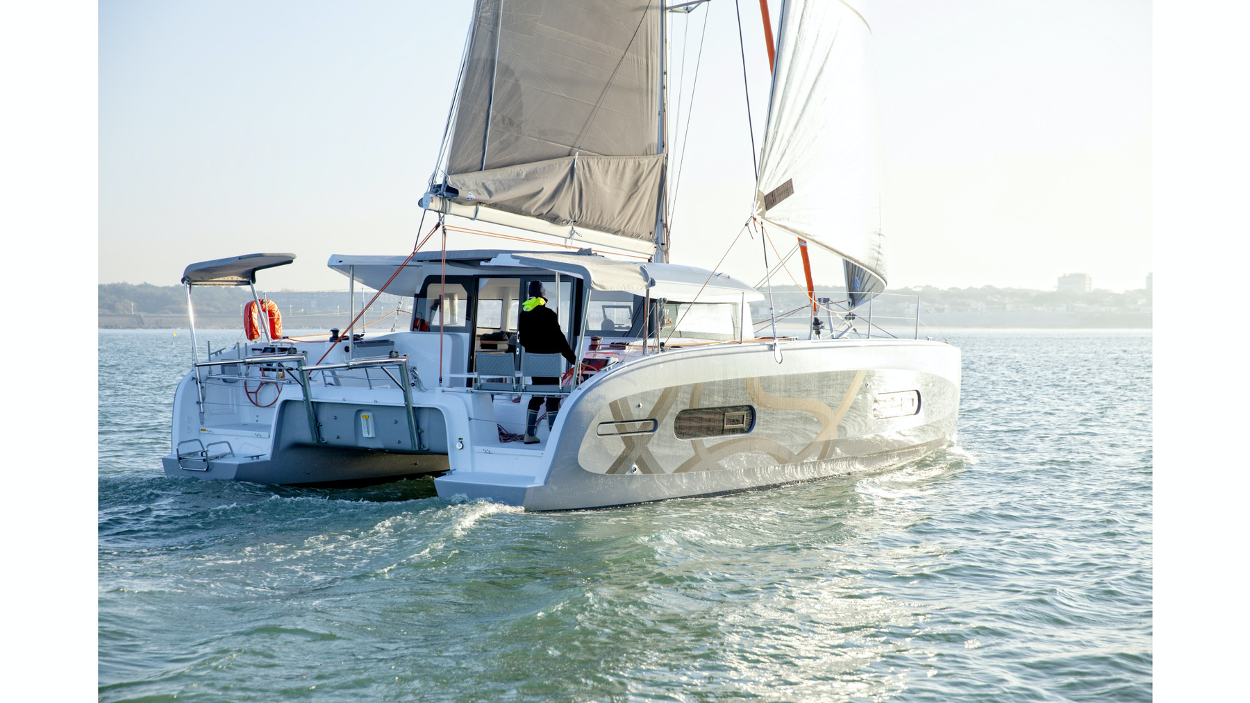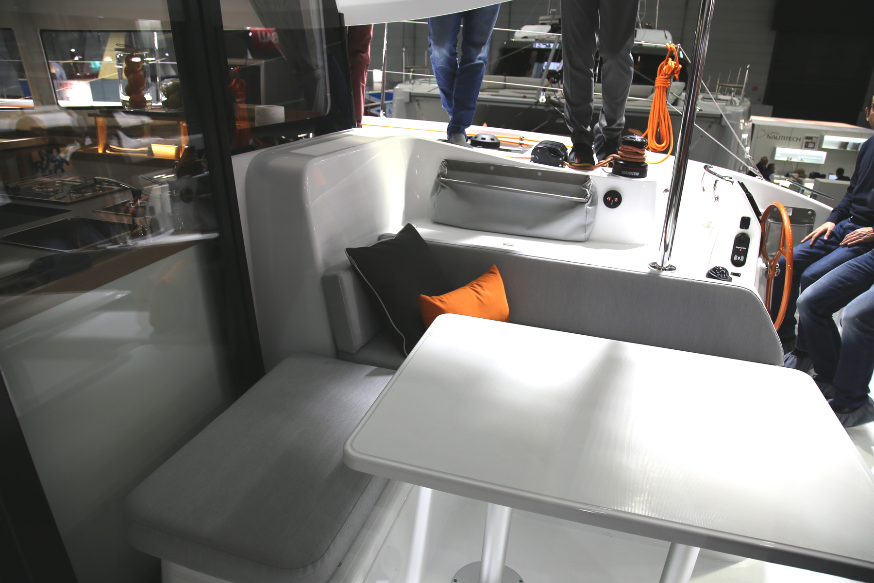 In terms of performance, these boats will be an upgrade from Laggon's catamarans manufactured by the same Concern, the Beneteau Group. None of the boats have a flybridge, the boom is close to the ridge roof, which gives a more efficient sailing plane. The helms are located at the back of each side, this is the place that gives the best overview and sailing feeling. You see the whole boat, all the sails and how the waves meet the boat.
