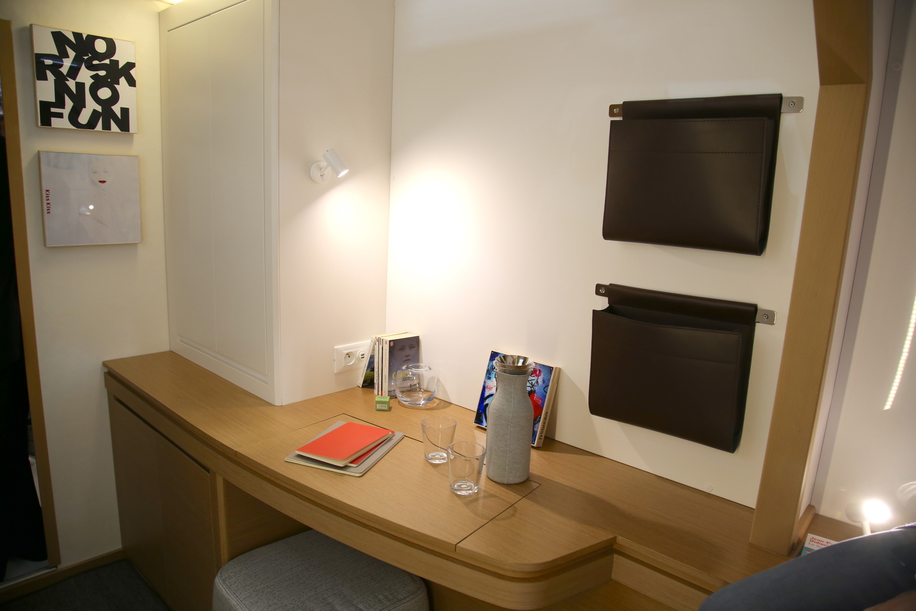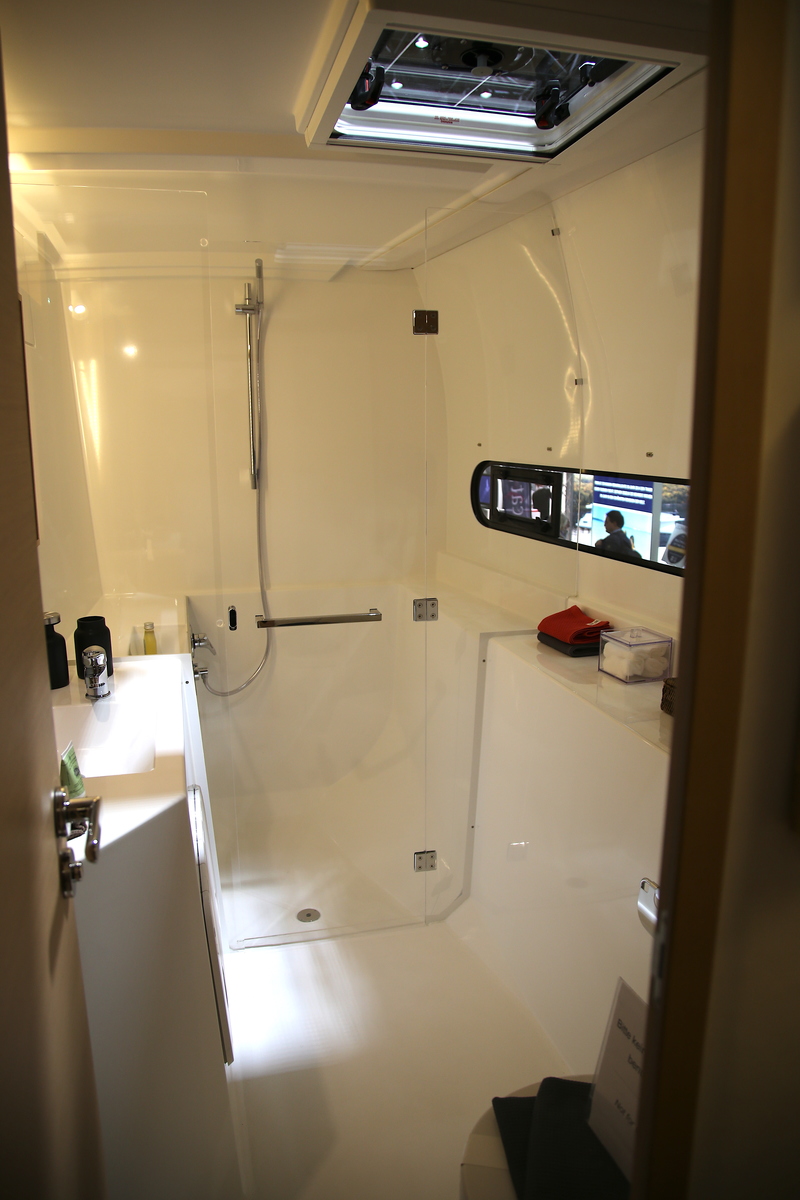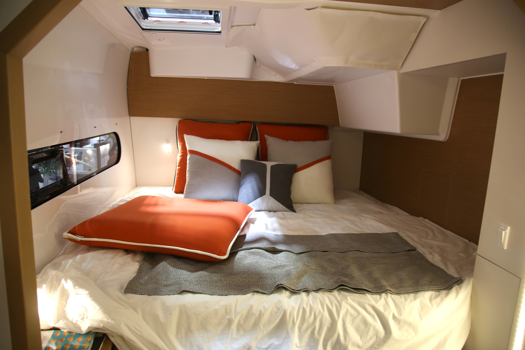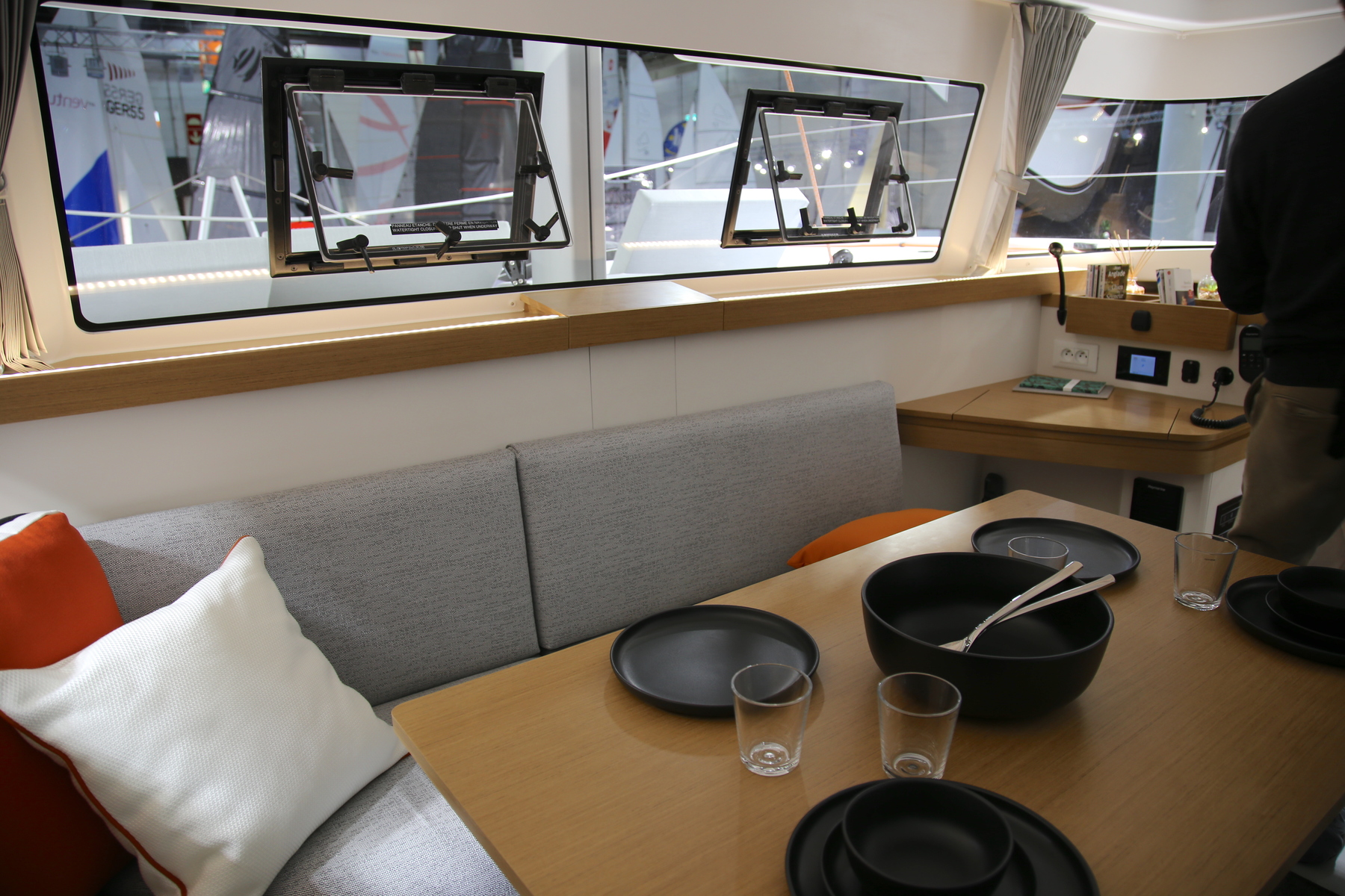 On this boat the mast sits relatively far ahead and does not intrude on the salon.