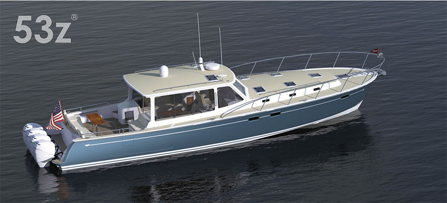 Bob Johnstone, founder and CEO of MJM Yachts, and son Peter, Director of Product Development, announced introduction of a quad-powered 53-foot yacht for summer 2019. With quad Mercury Verados, it is expected to reach speeds of 50 mph while offering the benefits boaters enjoy from smaller sport boats: shallow draft, easy maintenance, and easy handling around the docks. “Now in the 53z boaters can also enjoy the enhanced living space, all weather cruising, and smoother ride offshore that we all like in a bigger boat,” said Bob Johnstone.
